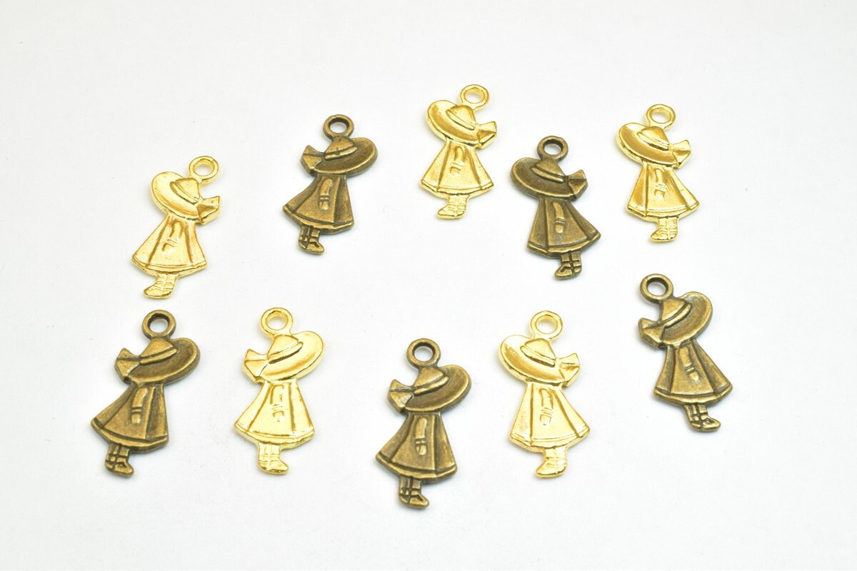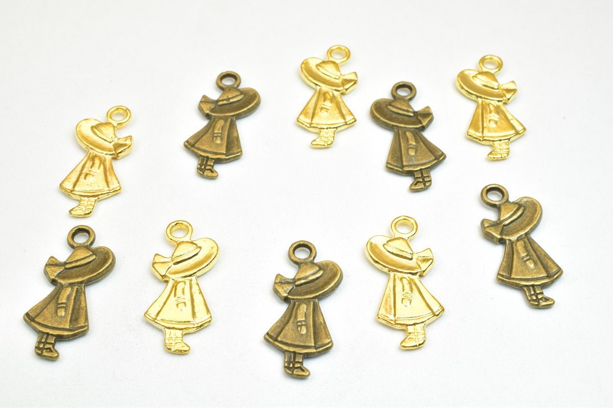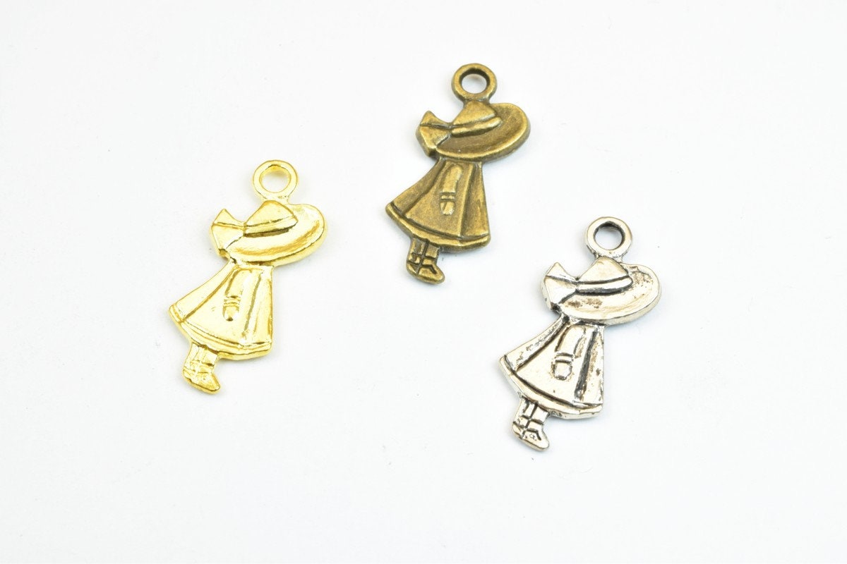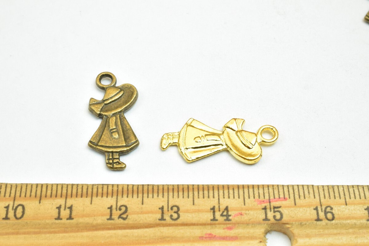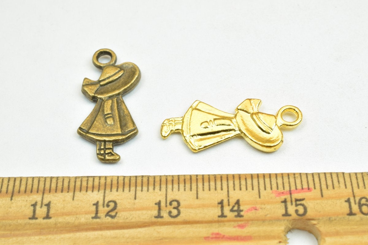 10 PCs Girl Charm Pendants Bronze/Gold/Silver Beads Base Metal Alloy Pendant Size 25x11mm Jump Ring Size 2.5mm For Jewelry...
