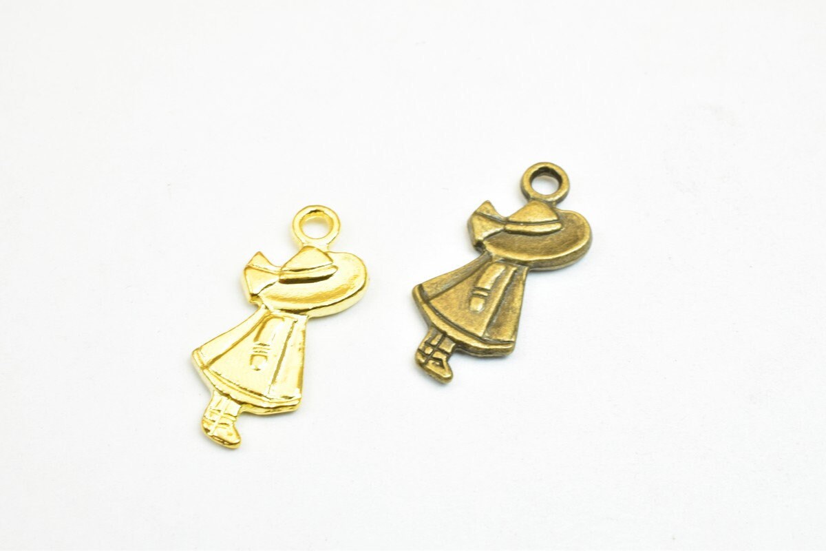 10 PCs Girl Charm Pendants Bronze/Gold/Silver Beads Base Metal Alloy Pendant Size 25x11mm Jump Ring Size 2.5mm For Jewelry Making