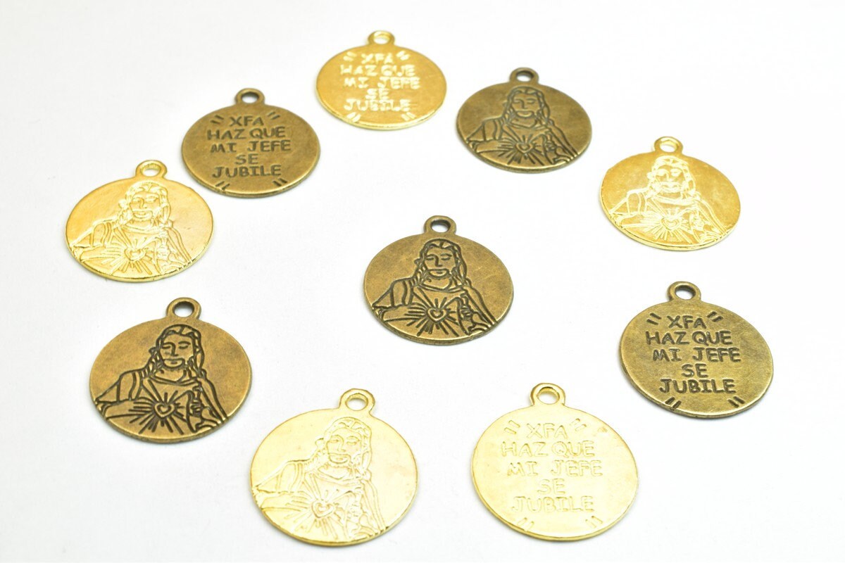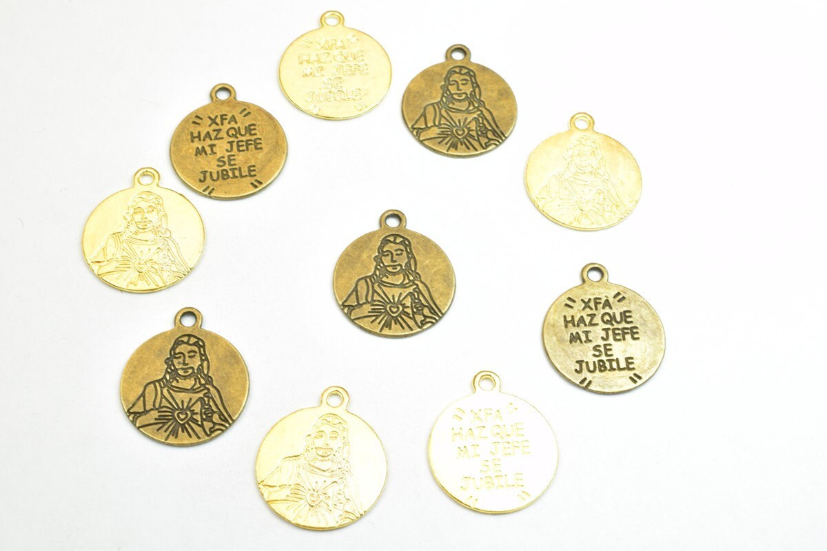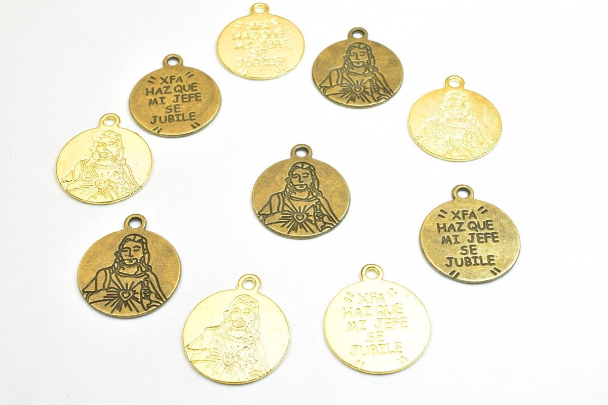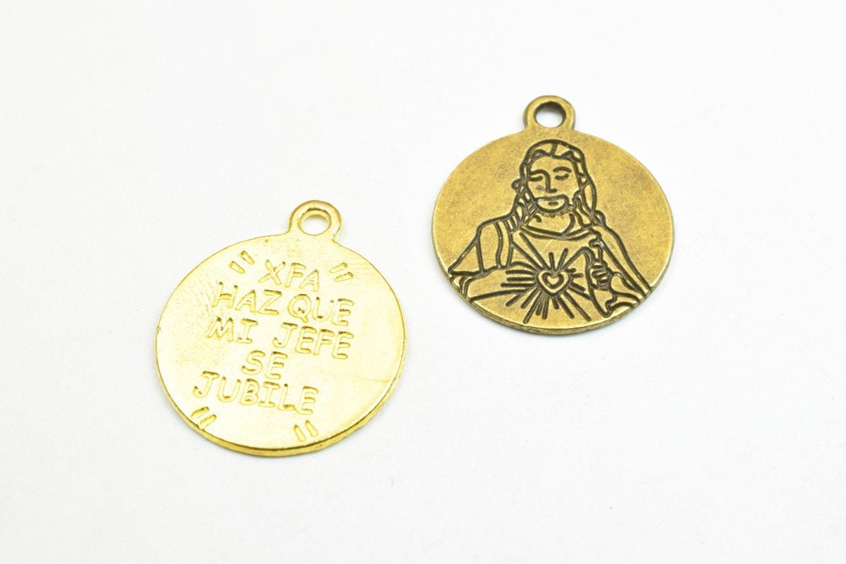 10 PCs Jesus Charm Pendants Bronze/Gold/Silver Beads Base Metal Alloy Pendant Size 21x18mm Jump Ring Size 2mm For Jewelry...