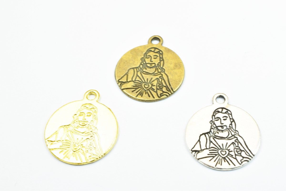 10 PCs Jesus Charm Pendants Bronze/Gold/Silver Beads Base Metal Alloy Pendant Size 21x18mm Jump Ring Size 2mm For Jewelry Making