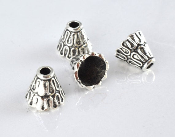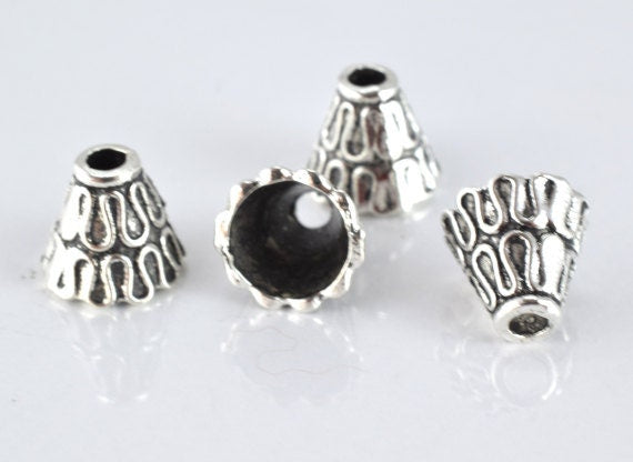 10X10mm Antique Silver Black Accent Decorative Cone Metal Beads, 20pcs/PK, 2mm hole 1mm thickness