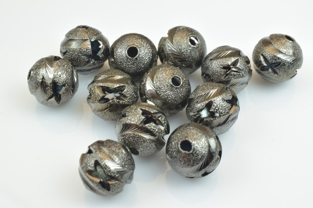 100 PCs Gun Metal Plated Black Carved Round Beads 6mm/8mm/10mm Diamond Cut For Jewelry Making