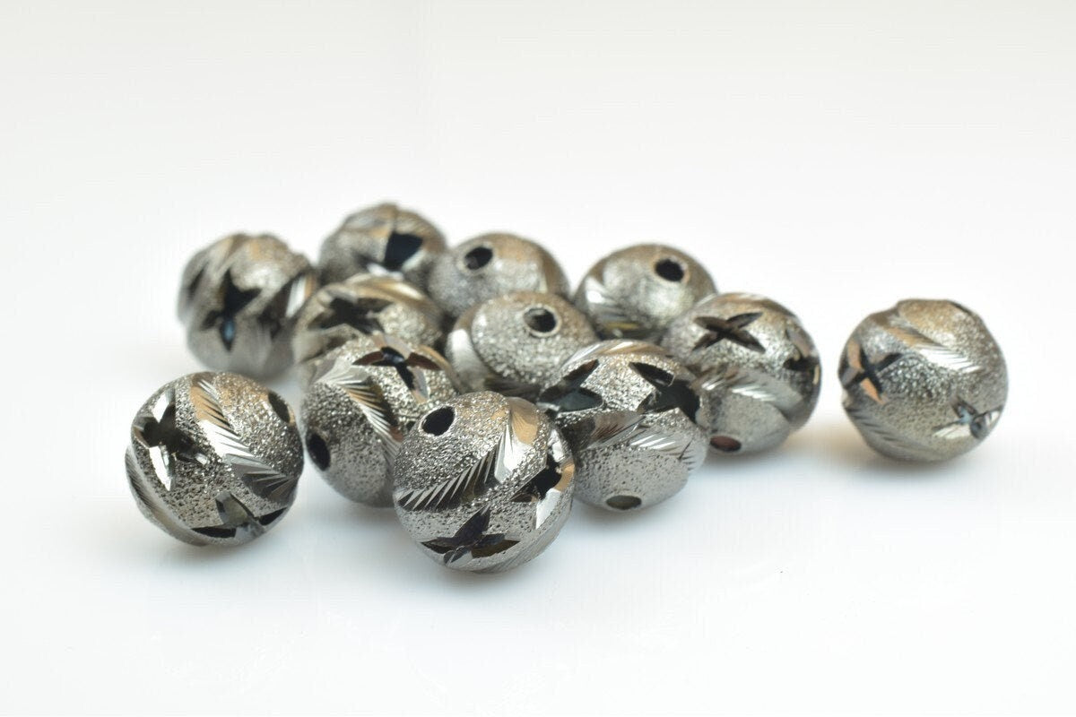 100 PCs Gun Metal Plated Black Carved Round Beads 6mm/8mm/10mm Diamond Cut For Jewelry Making jewelry making supplies - de...