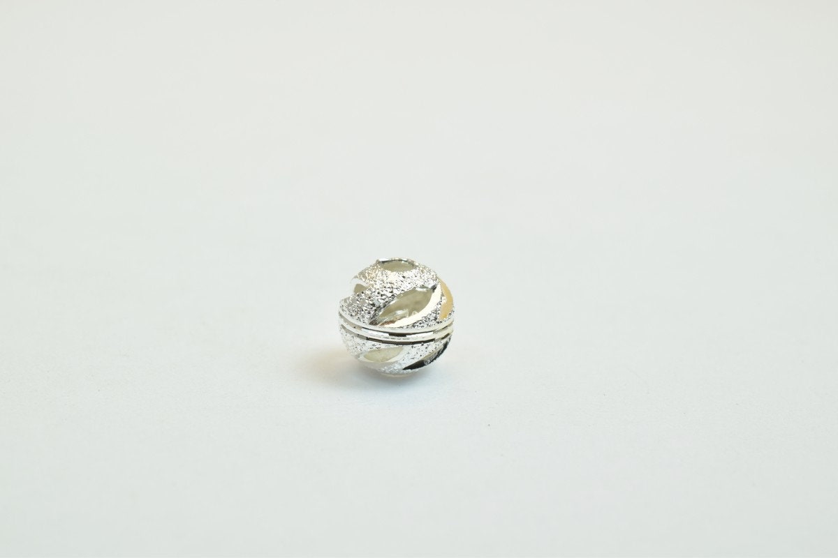 100 PCs Silver Plated Carved Round Beads 6mm Diamond Cut Watermelon Ball jewelry making supplies - detail image 2