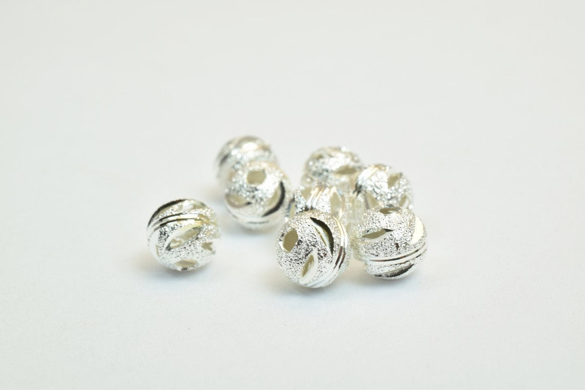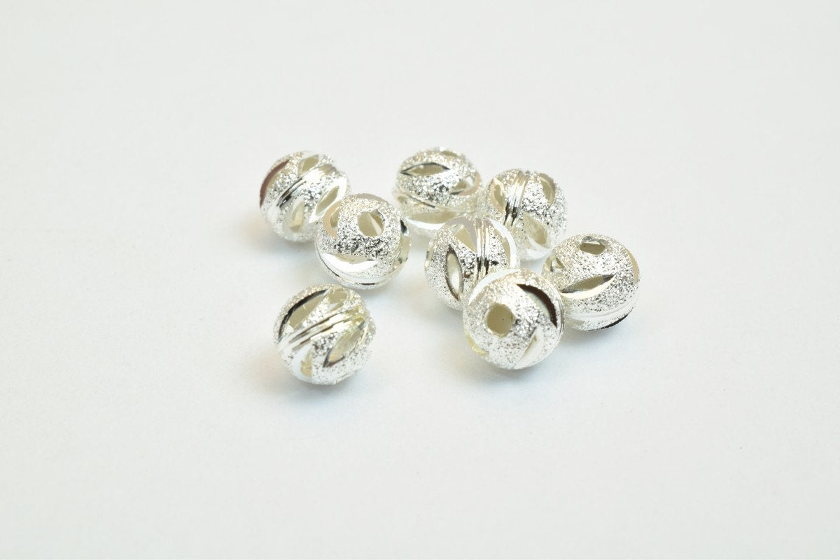 100 PCs Silver Plated Carved Round Beads 6mm Diamond Cut Watermelon Ball jewelry making supplies