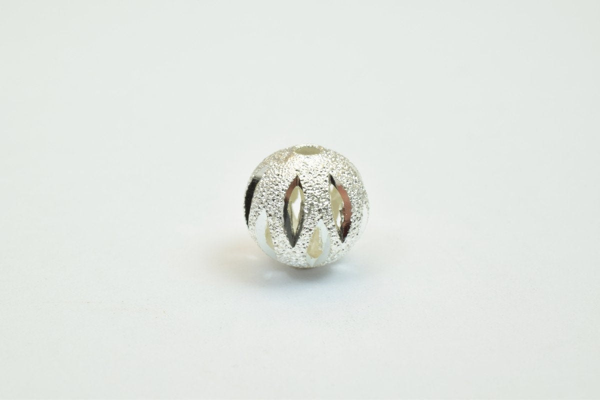 100 PCs Silver Plated Carved Round Beads 8mm/10mm Diamond Cut jewelry making supplies - detail image 5