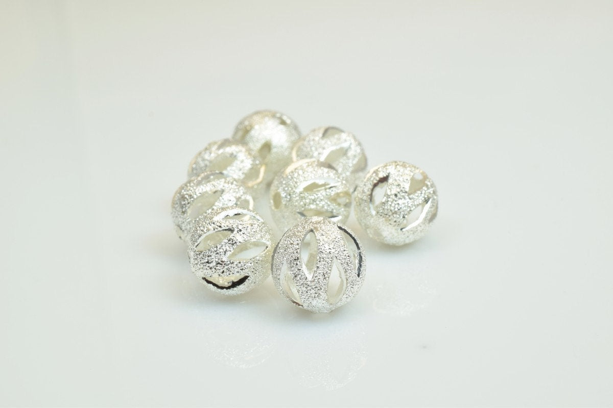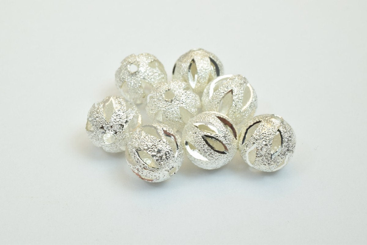 100 PCs Silver Plated Carved Round Beads 8mm/10mm Diamond Cut jewelry making supplies