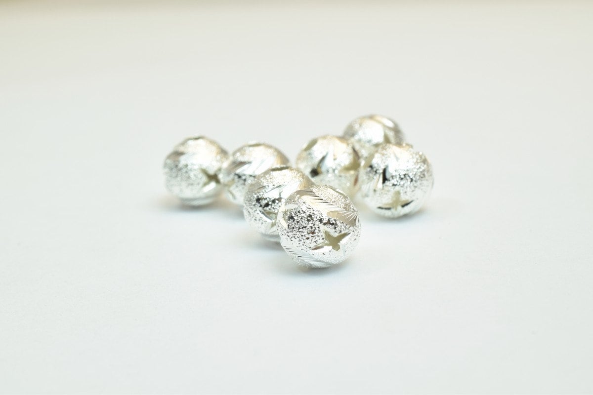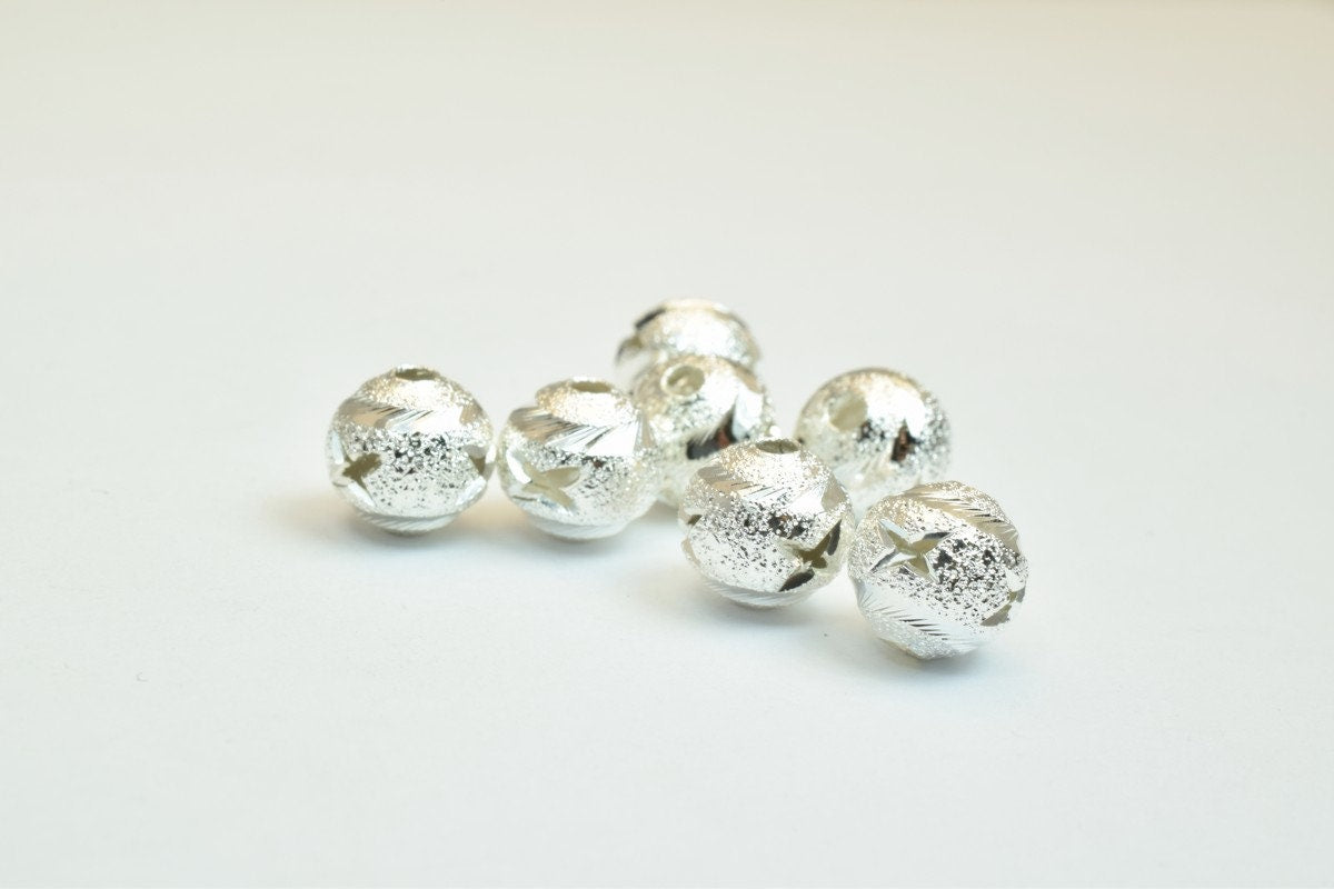 100 PCs Silver Plated Carved Round Beads 8mm Diamond Cut jewelry making supplies