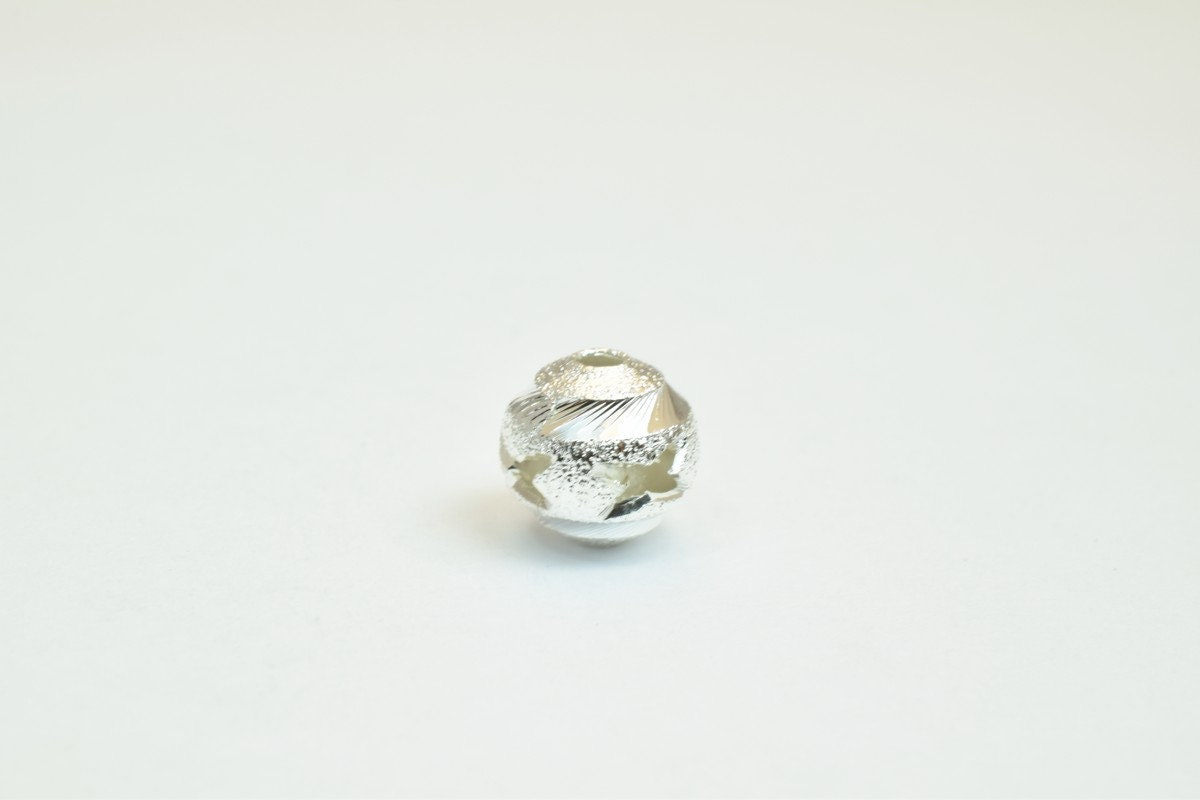 100 PCs Silver Plated Carved Round Beads 8mm Diamond Cut