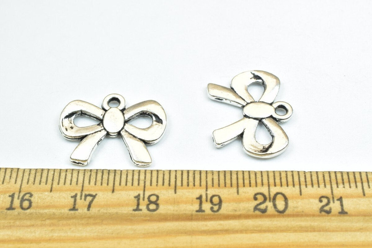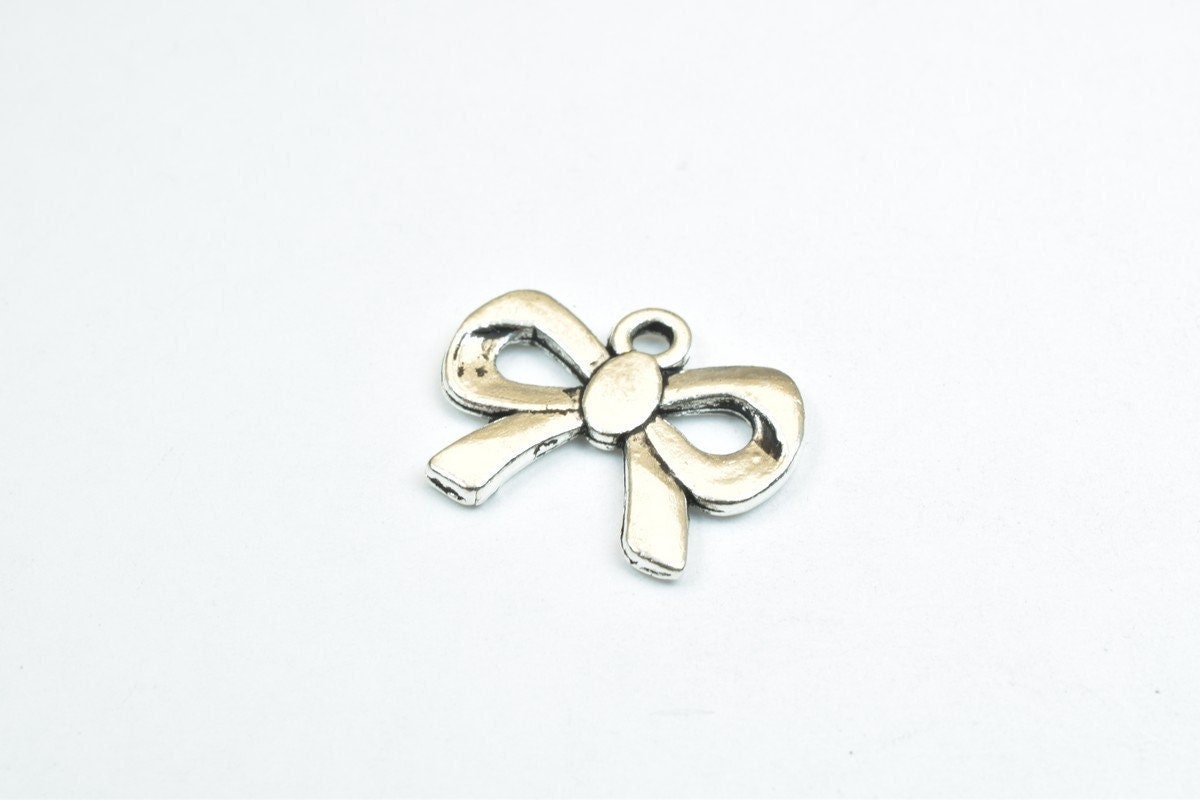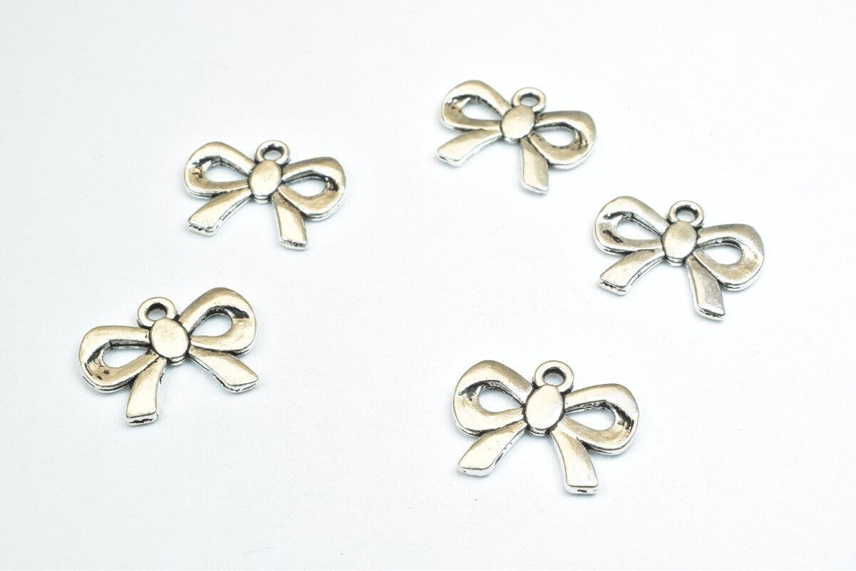10 PCs Bow Tie Charm Antique Silver Alloy Bowknot Gift Christmas Size 15x19mm Thickness 2mm Jump Ring 1.5mm Decorative Design For Jewelry Making