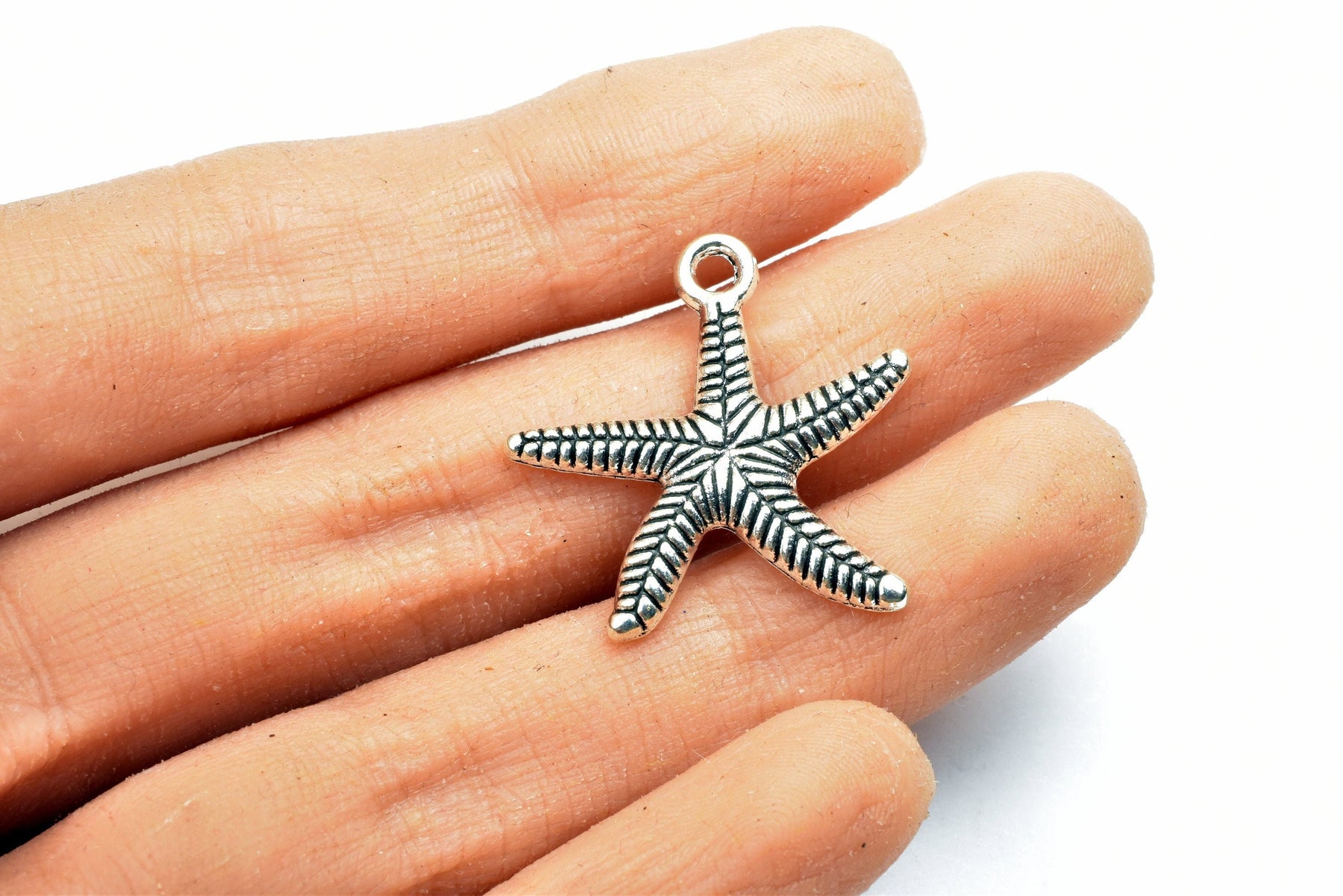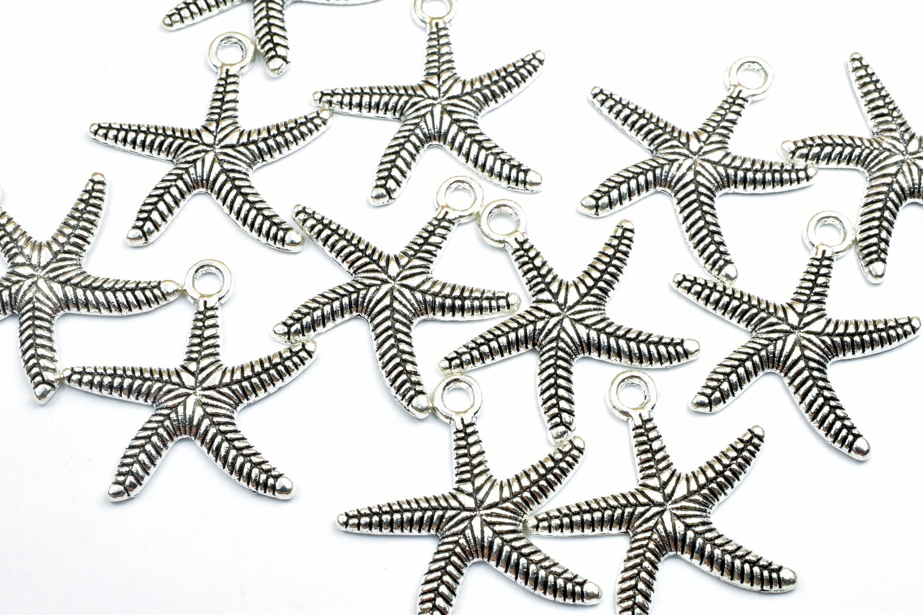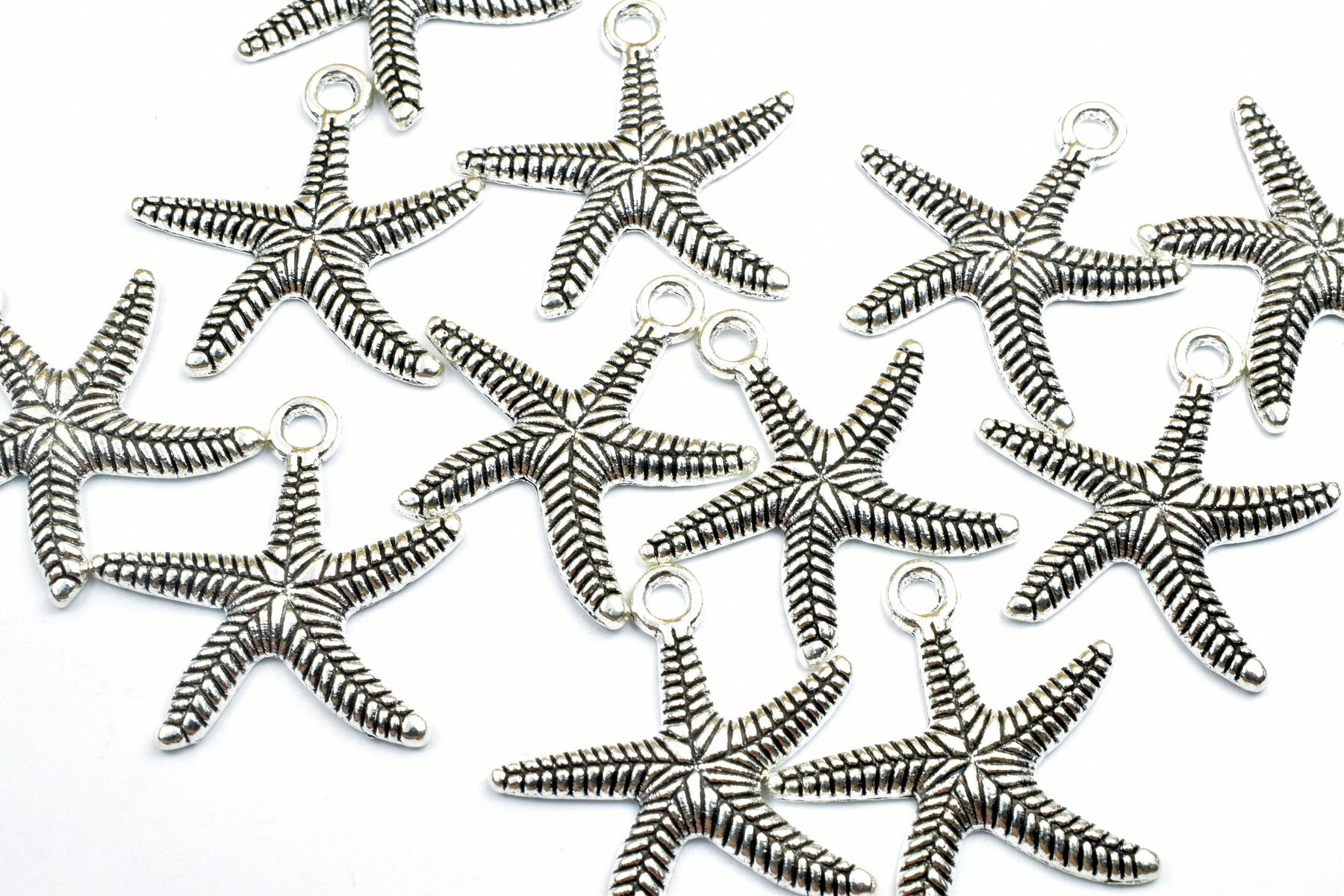 10PCs Sea Star Charms Size 25mm Antique Tibetan Silver Tone Charm Ocean Beach Sea Pendant Finding For Jewelry Making jewel...