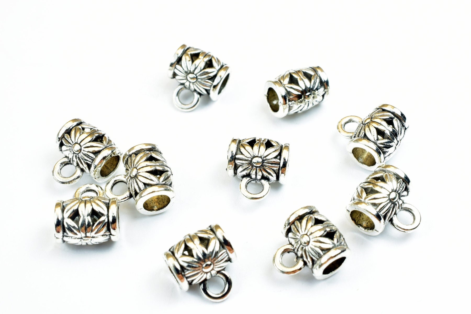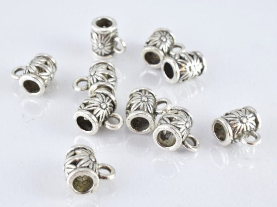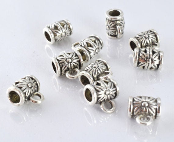 10x10mm Sunflower Hanger Decorative Antique Silver Beads, 2mm hole 1mm thickness bail 1.5mm Finding For Jewelry Making 10PCs/PK