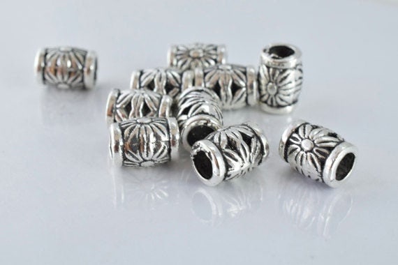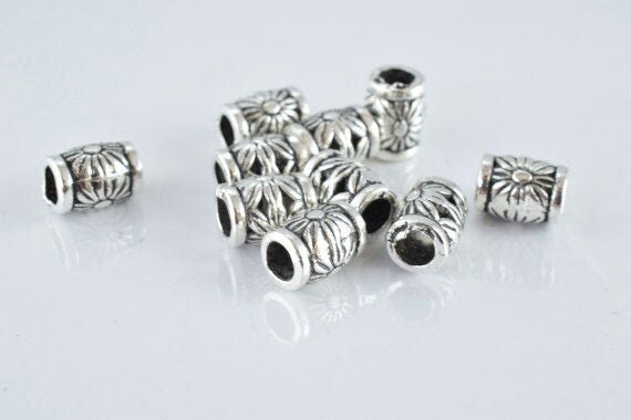 10x7mm Sunflower Antique Silver Metal Beads, Sold by 1 pack of 10pcs, 3mm hole opening, 1mm bead thickness jewelry making...