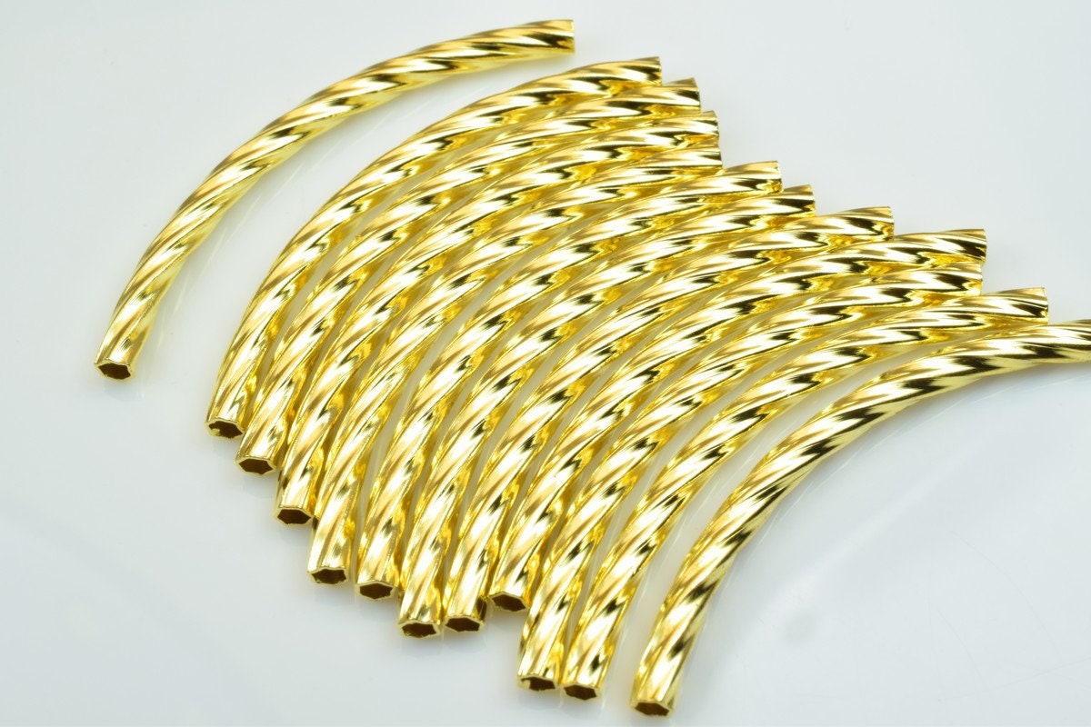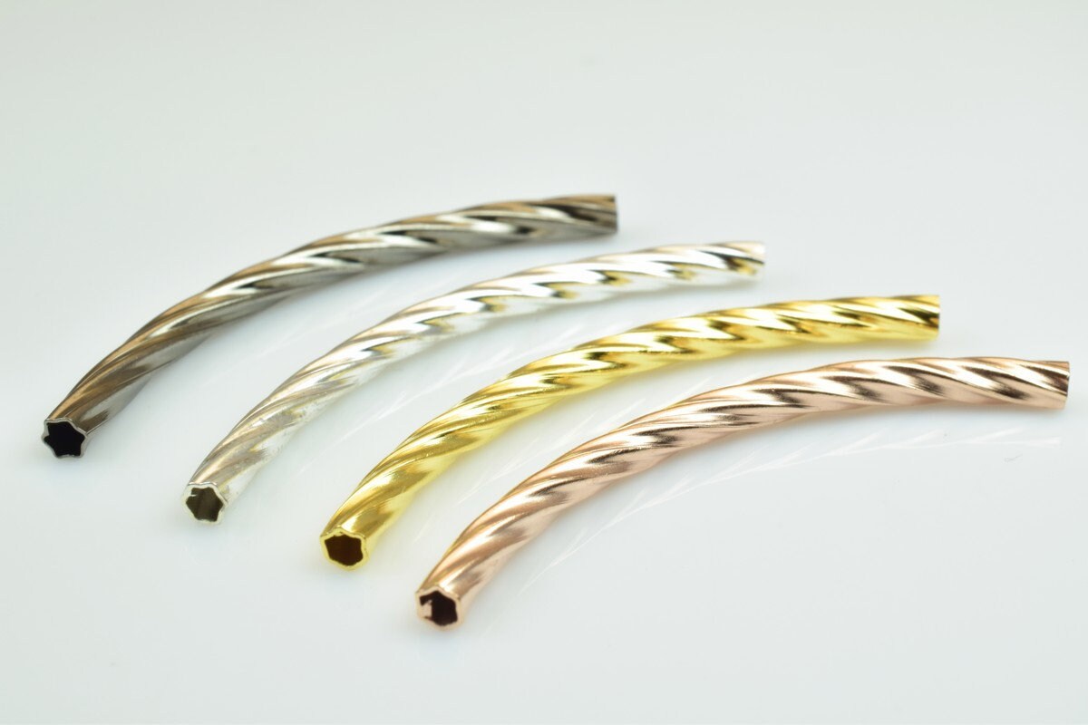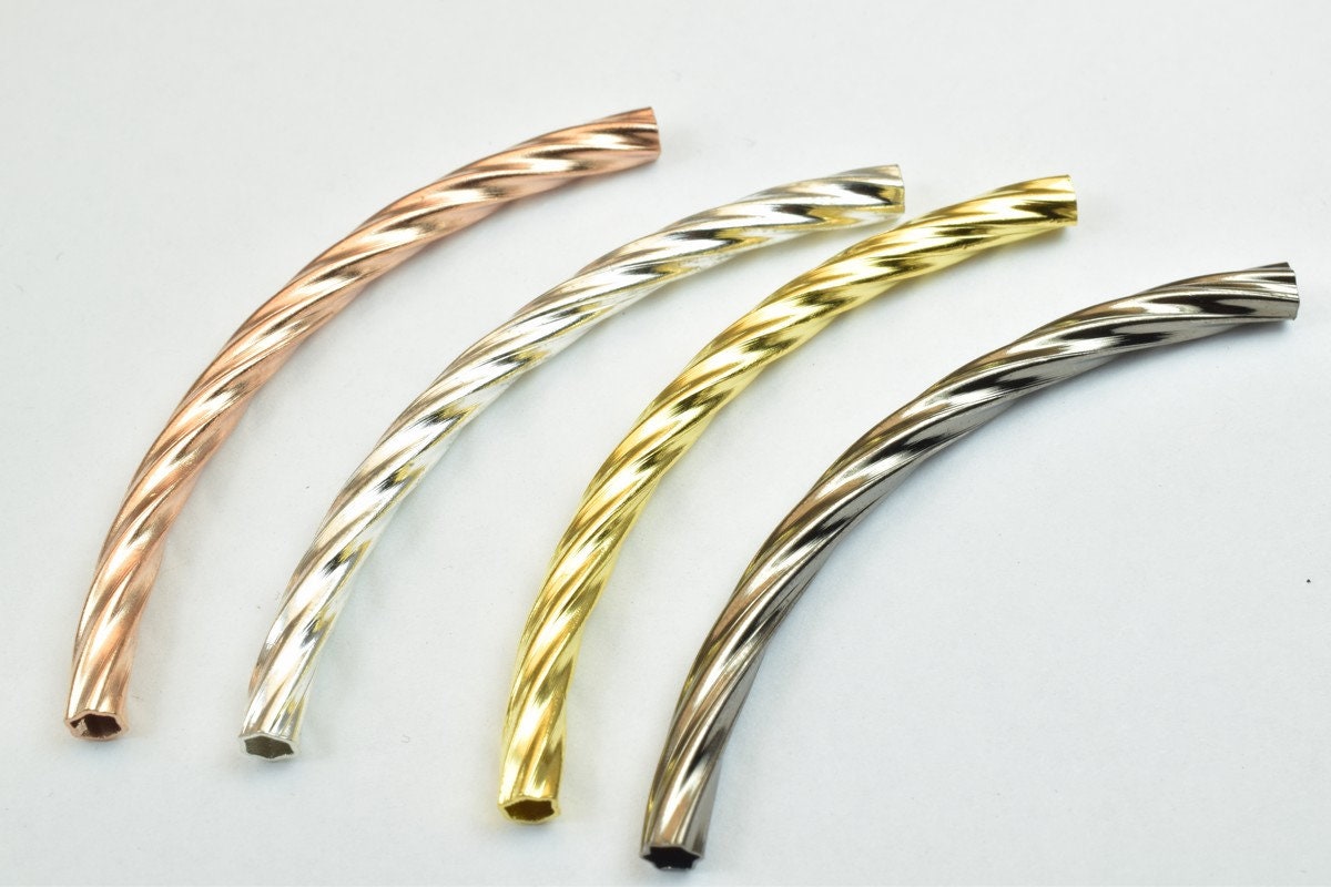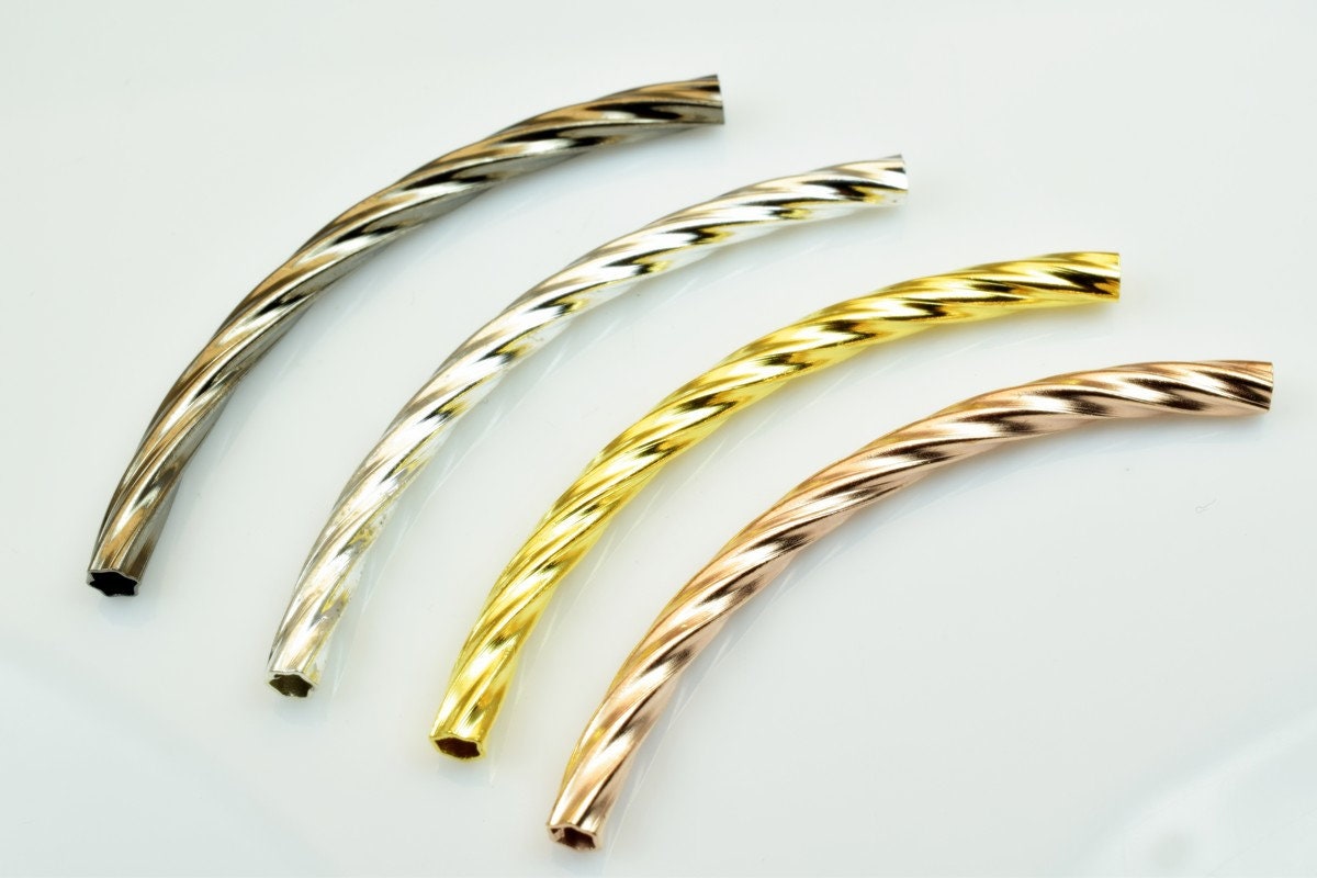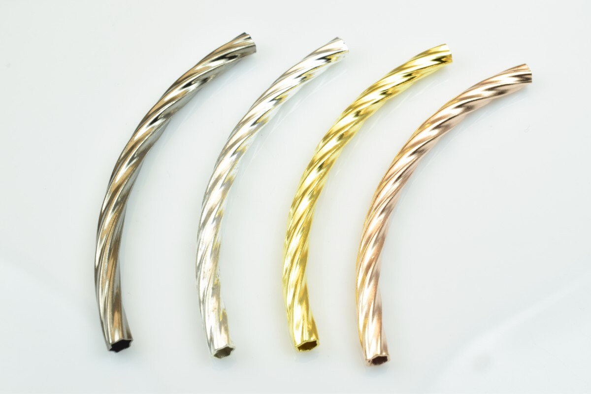 12 PCs Curve Tube Jewelry Finding Beads 3x40mm/3x45mm/3x50mm Diamond Cut Gold/Silver/Gun Metal/ Rose Gold For Jewelry Making