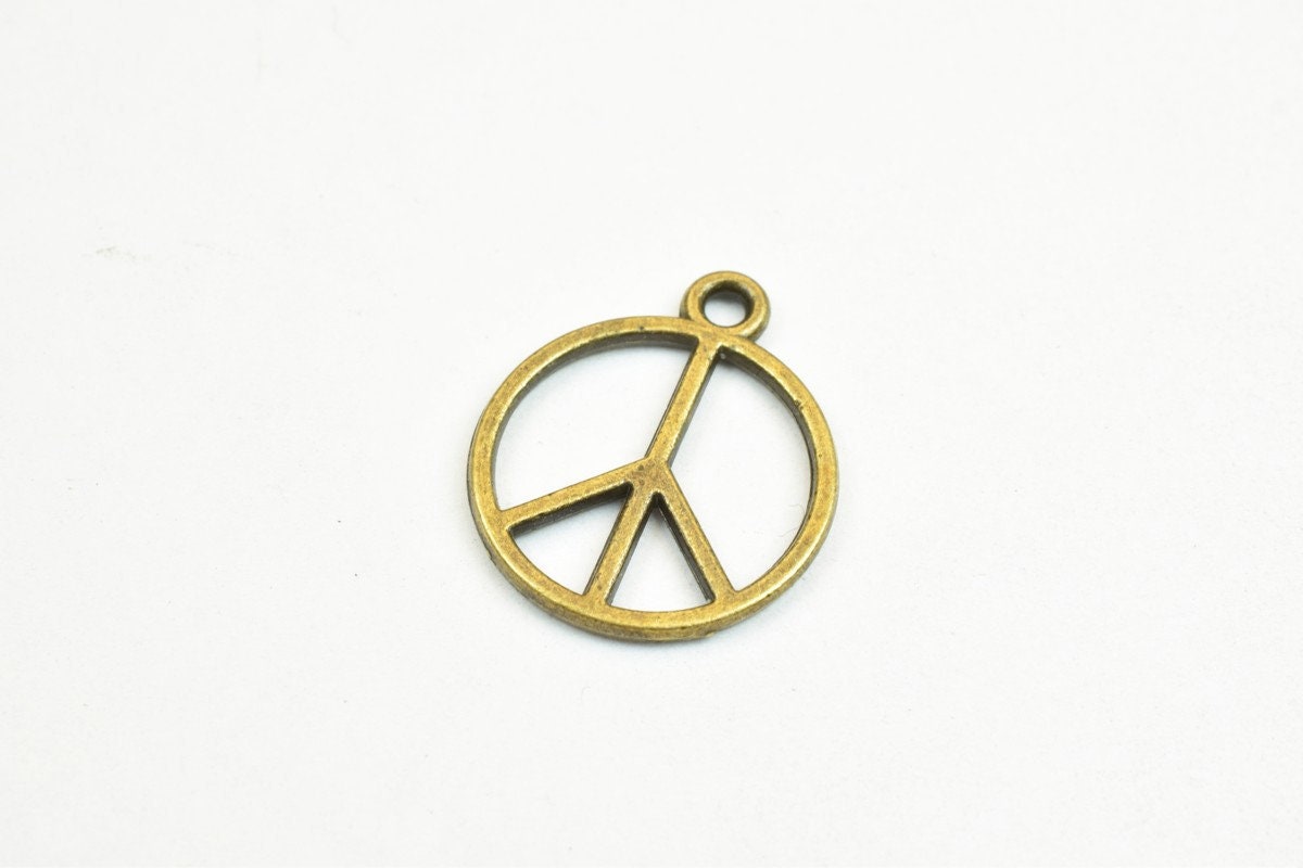 13 PCs Peace Sign Charm Pendant Bronze/Gold Charm Beads Alloy Metal Bracelet Pendant Size 16.5x14mm JumpRing Size 1.5mm Fo...