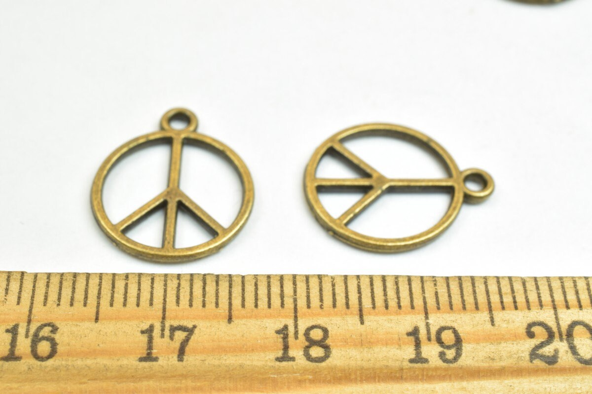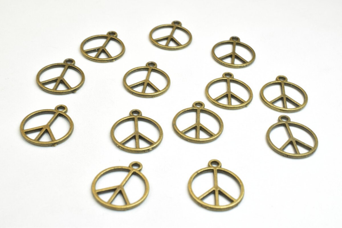 13 PCs Peace Sign Charm Pendant Bronze/Gold Charm Beads Alloy Metal Bracelet Pendant Size 16.5x14mm JumpRing Size 1.5mm For Jewelry Making