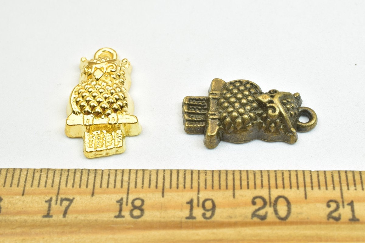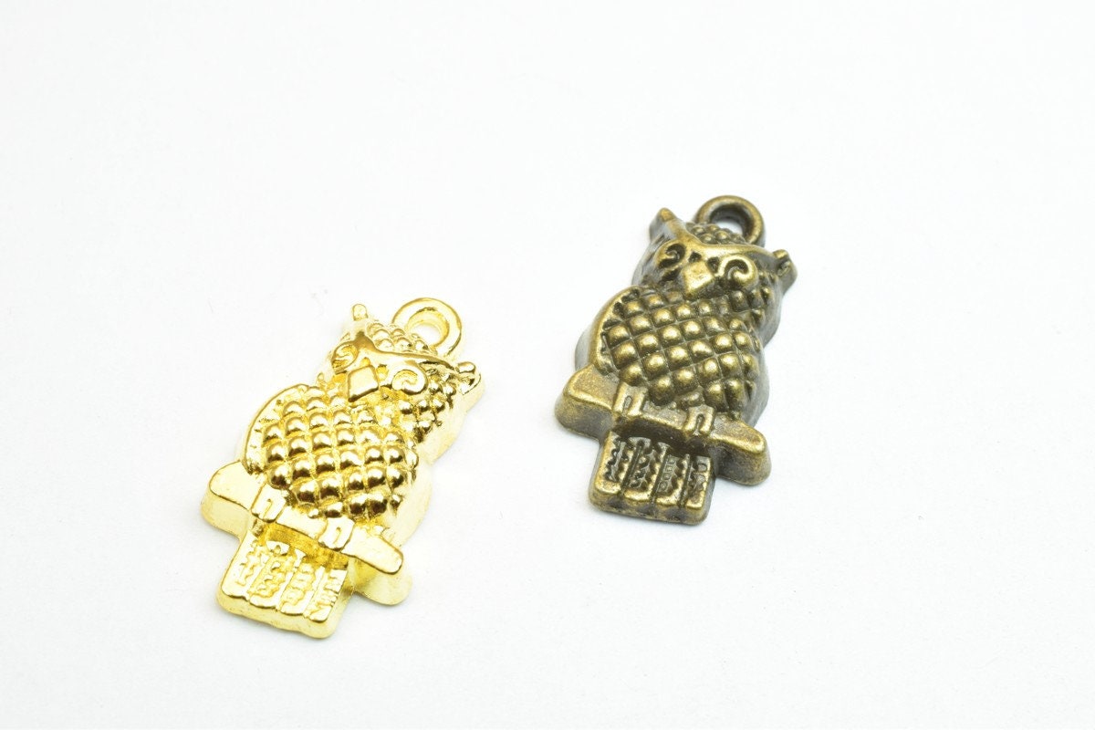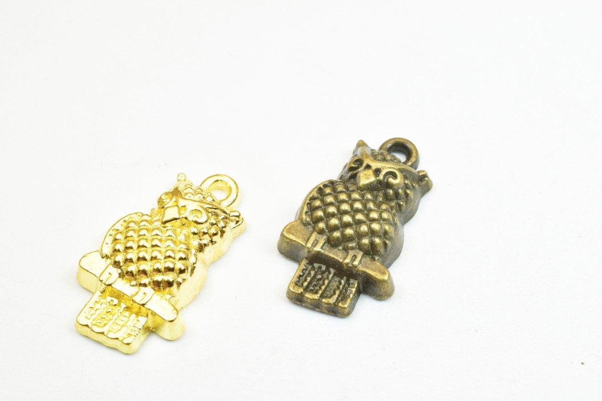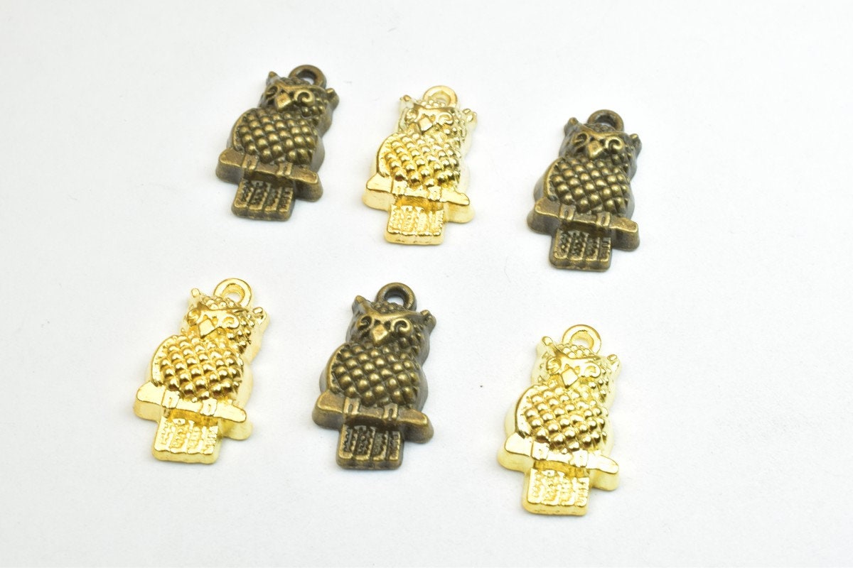 6 PCs Owl Charm Pendant Beads Antique Green/Gold Size 21x12mm Decorative Design Metal Beads 1.5mm JumpRing Opening for Jewelry Making