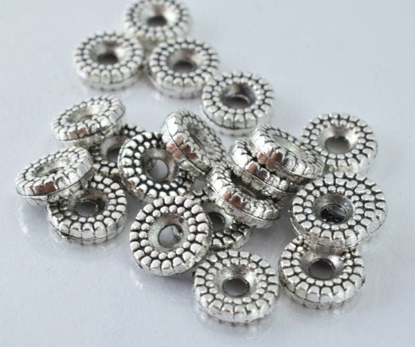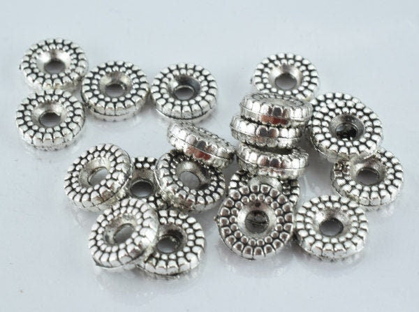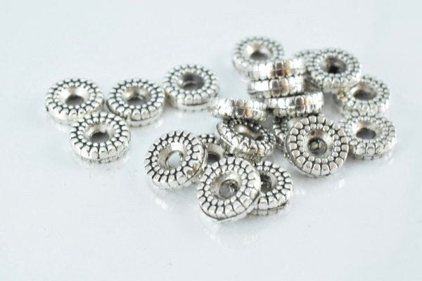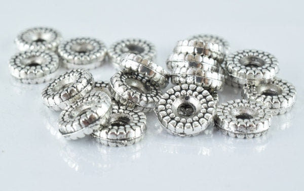 9m Detailed Ribbed Antique Silver Alloy Metal Beads 20pcs/PK, 11grams/pk, 3m bead thickness 2m hole jewelry making supplie...