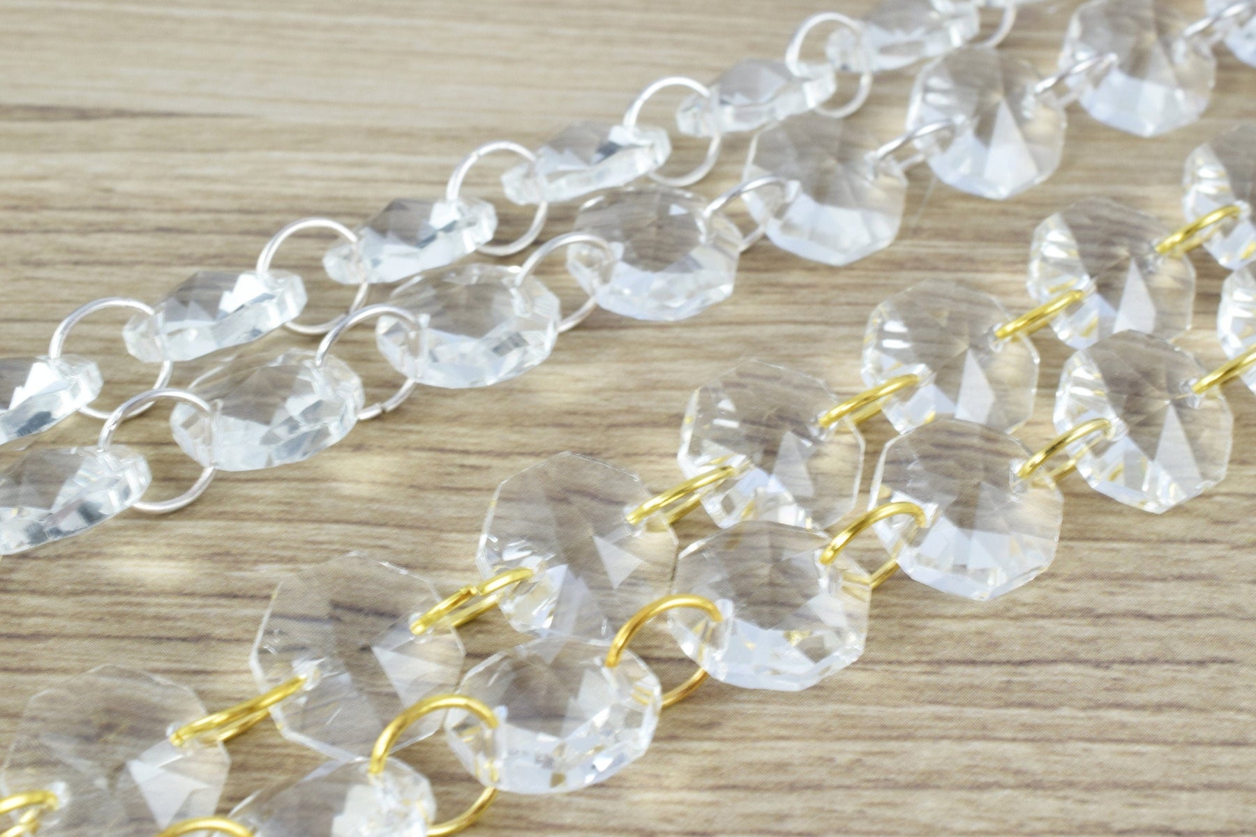14mm 1 Yard high quality clear crystal beaded garland for wedding centerpiece decorations and party decor. Each strand is connected with silver and gold rings and easy to separate the rings.
