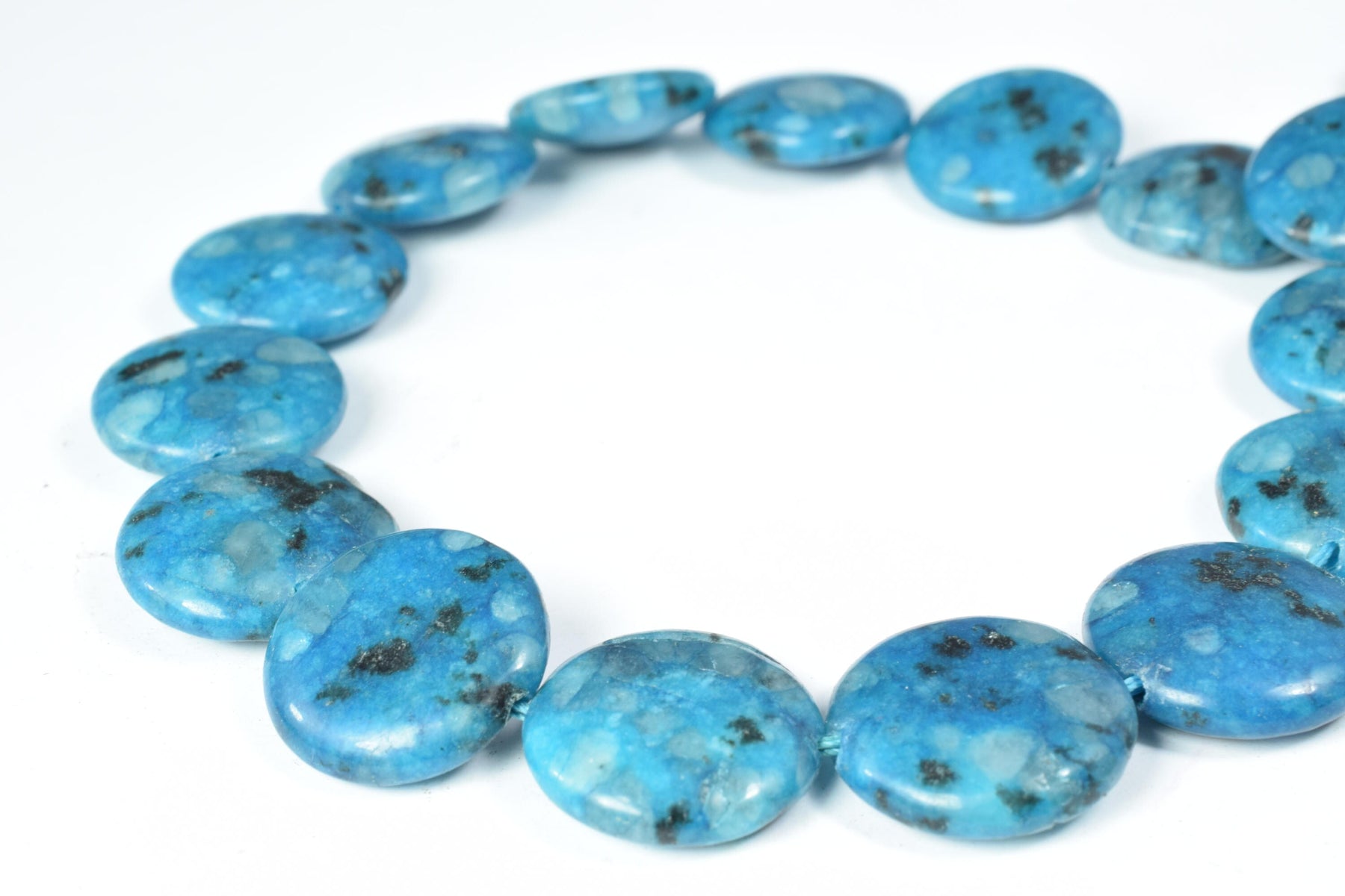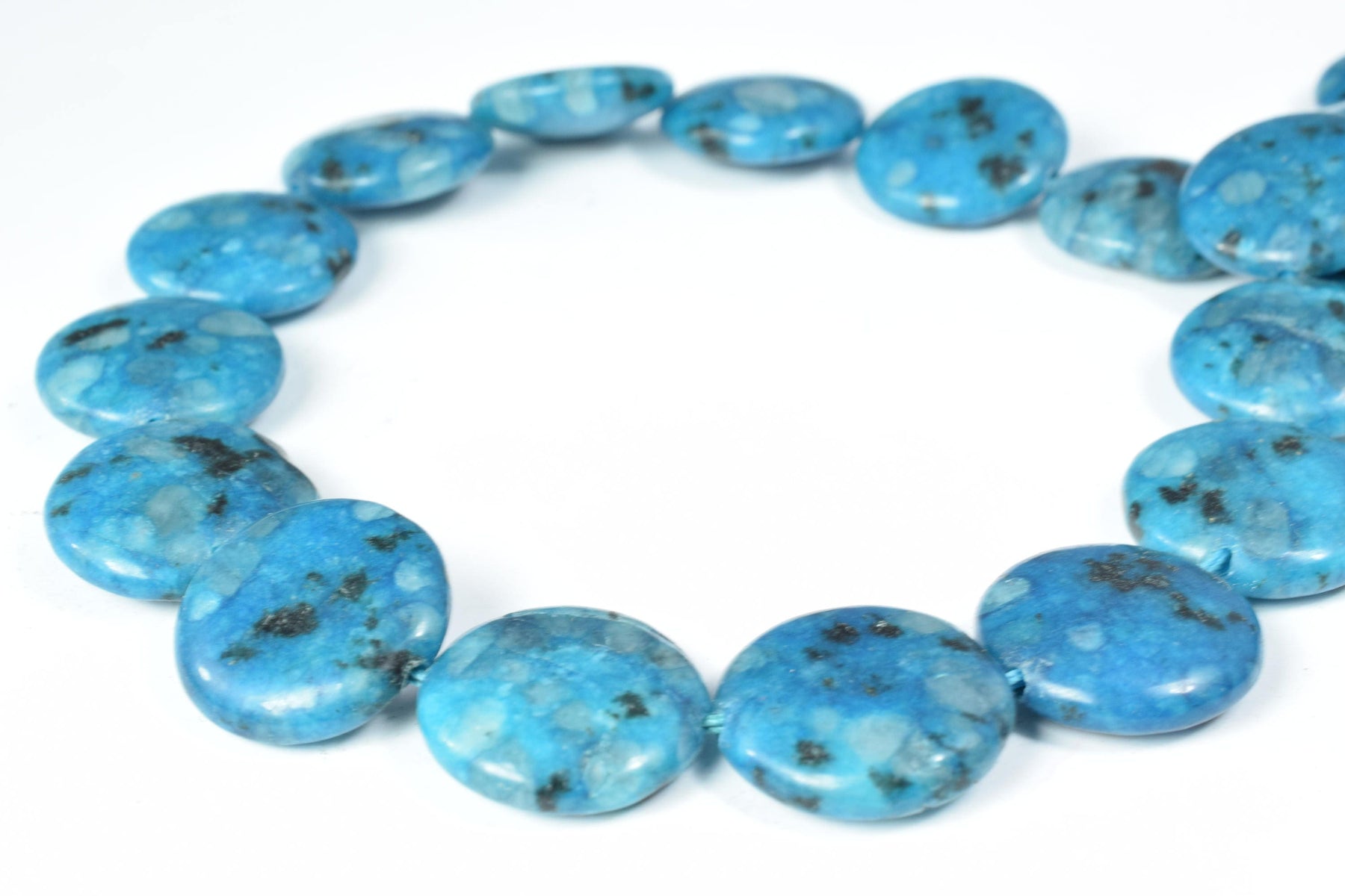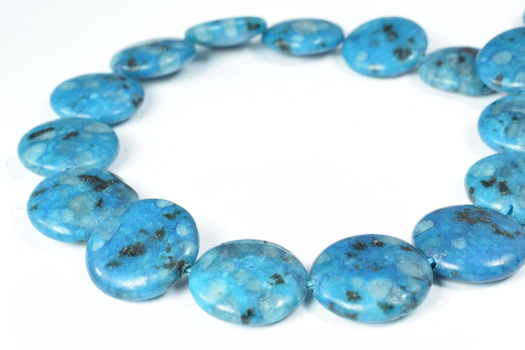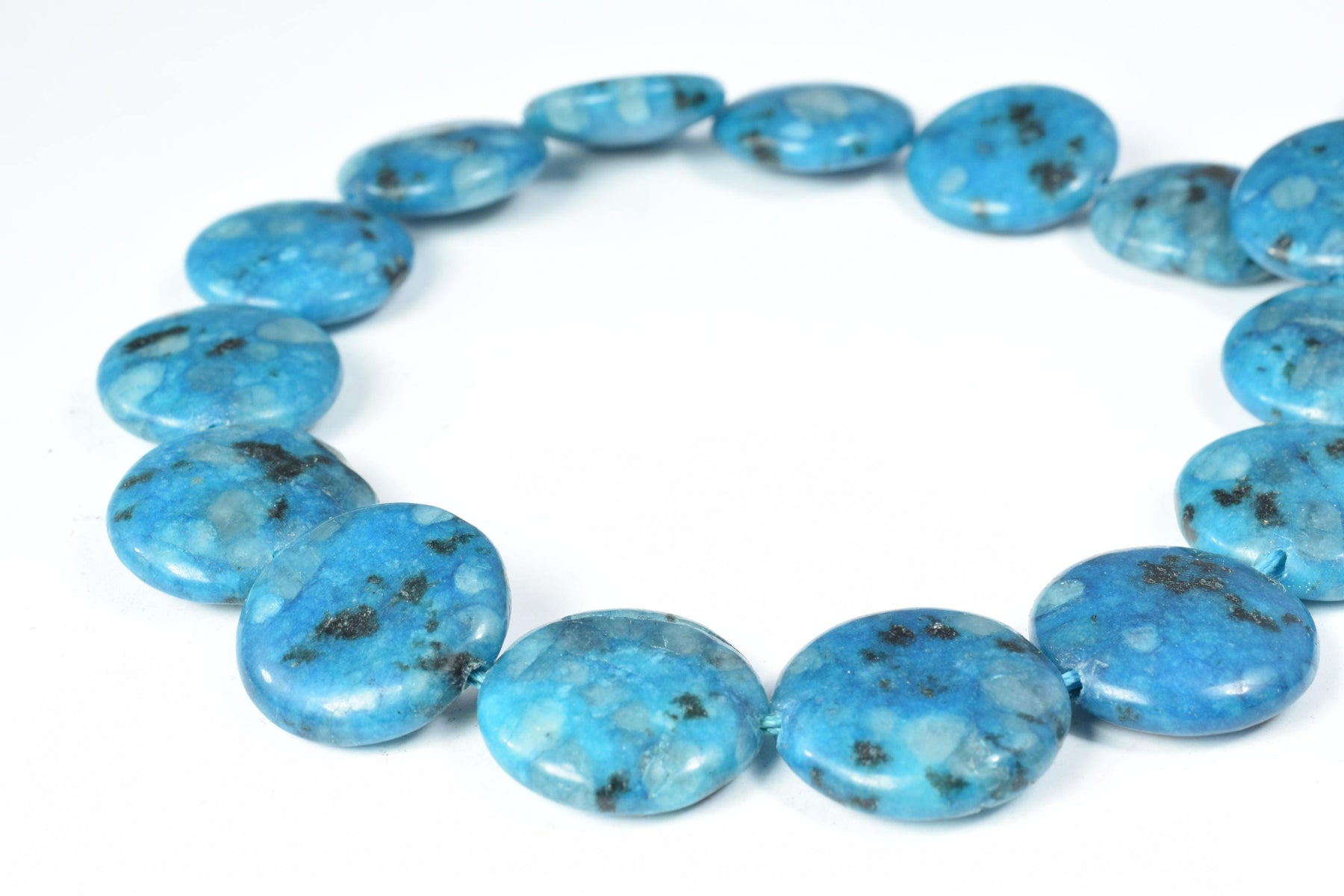 Details: 19mm Round Flat Blue Sesame Gemstone Beads/22pcs full strand/beautiful dyed beads can be used for creative jewelry.
