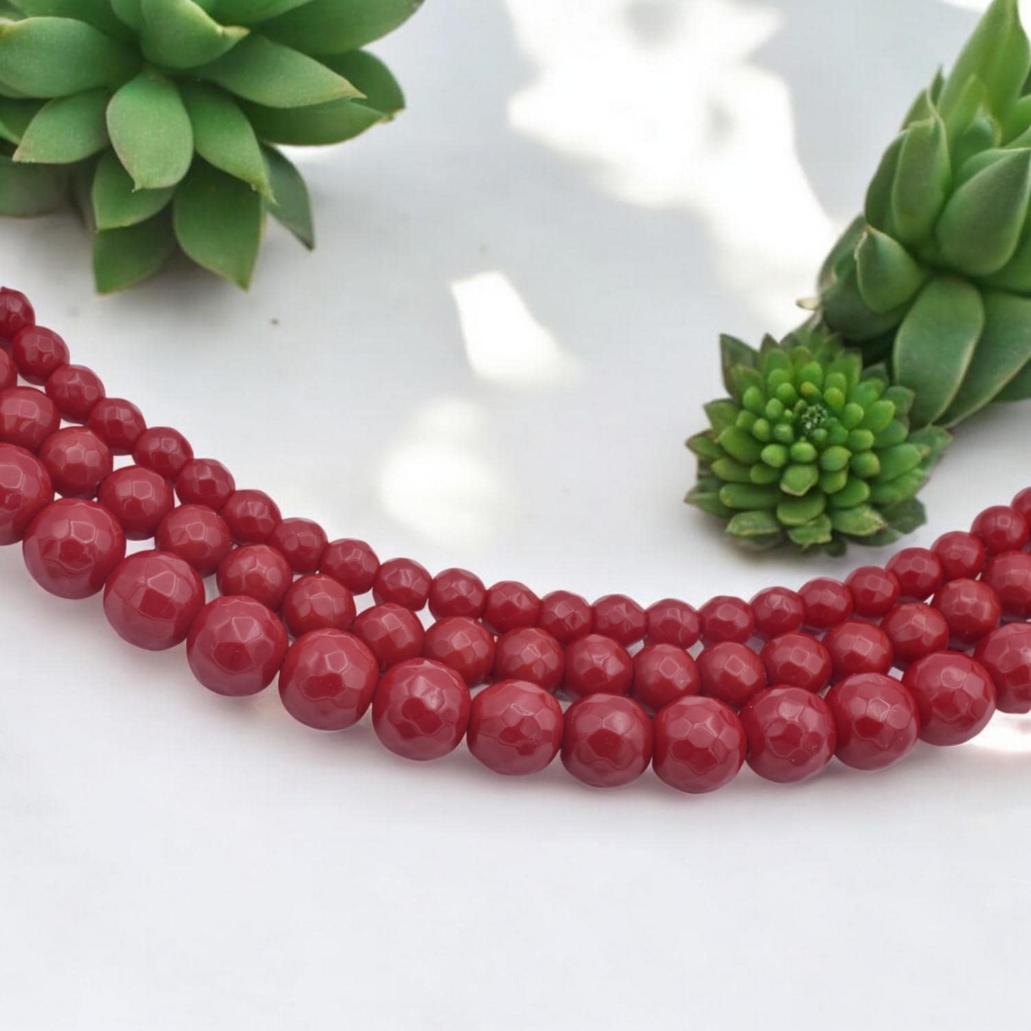 Enhance your jewelry creations with these stunning natural faceted red agate beads. Known for their vibrant, rich red hues and unique banding, these high-quality beads are perfect for adding a touch of elegance and sophistication to your designs.