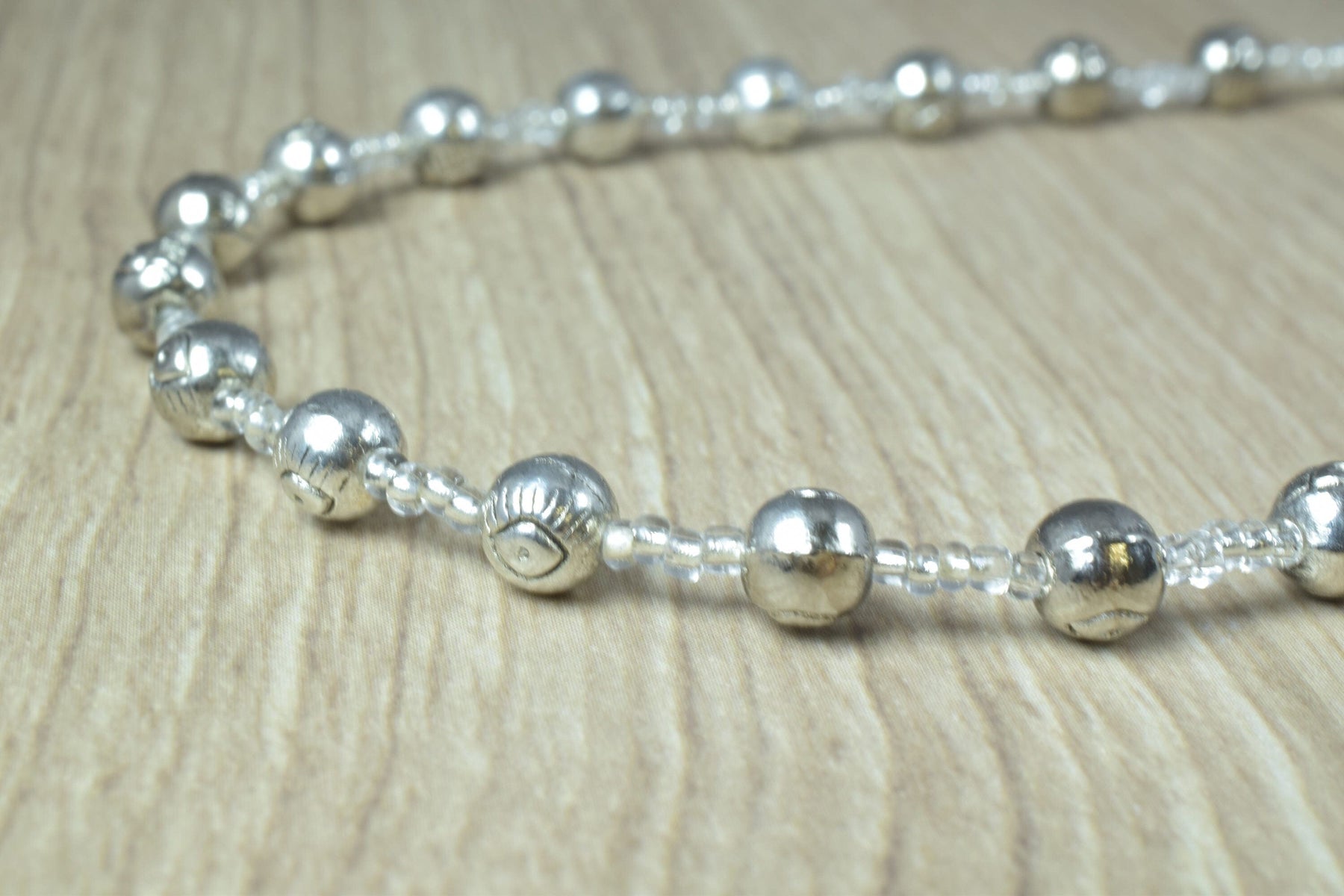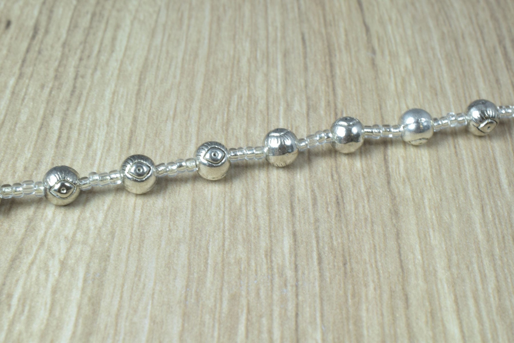 Details: 7mm Metal Evil Eye Alloy Beads/ 30pcs per pack/ 1.5mm hole opening/ Clear seed beads are strung in between the metal beads/
