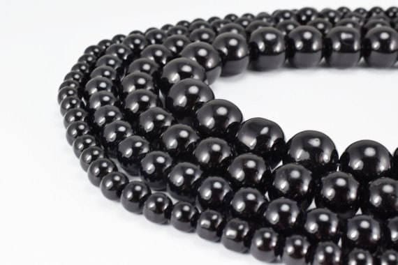 Shiny Black Onyx Glass Beads - Round Polished Spacer Beads for Jewelry Making - 6mm, 8mm, 10mm, 12mm Sizes