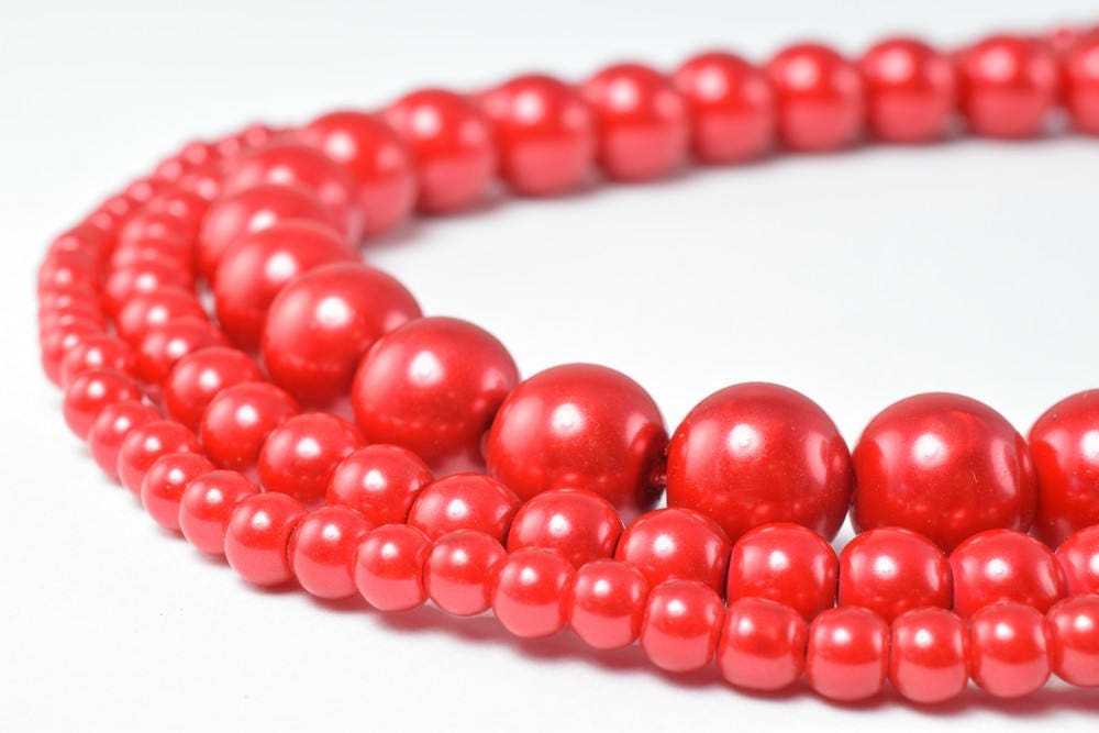Glass Pearl Beads Round Red Size 4mm/6mm/10mm Shine Round Ball Beads for Jewelry Making Item