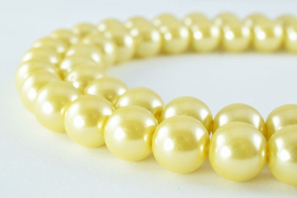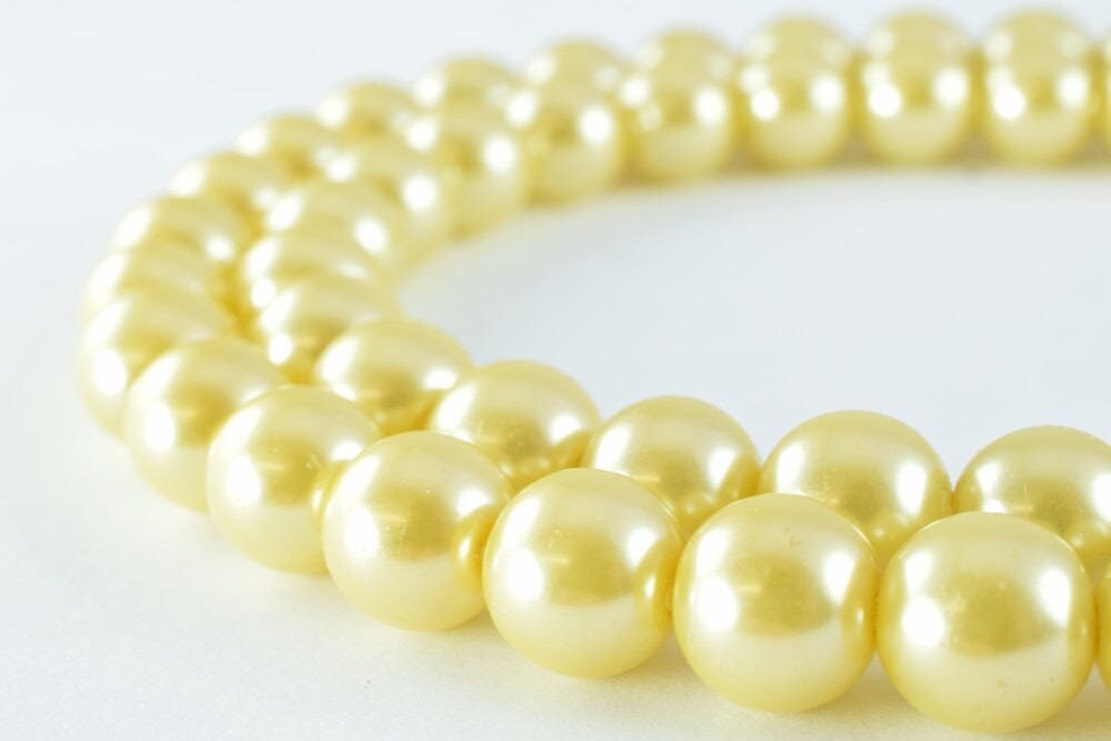 Light Gold Glass Pearl Beads Size 10mm Shine Round Ball Beads for Jewelry Making Item