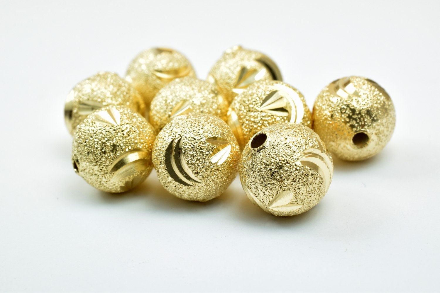 10mm 18K Gold Filled Look Alternative Stardust Diamond Cut Round Ball Beads for Jewelry Making