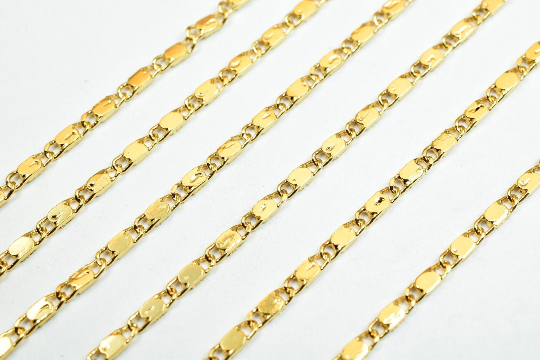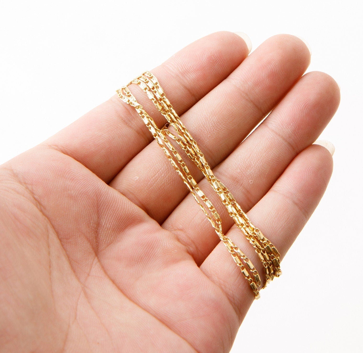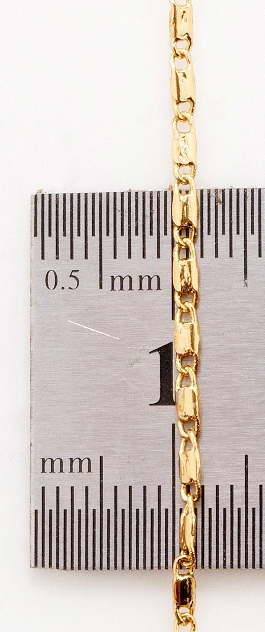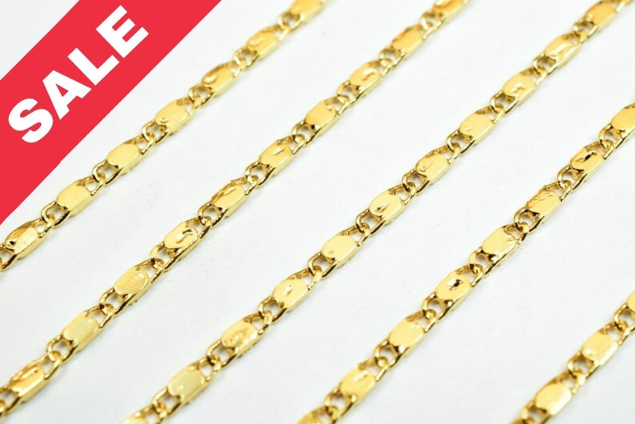 1.5mm Gold Plated Chain Flat Bar Chain/Beading Chain 18K Finding Chain For Jewelry Making GFC016A Sold by Foot Size:1.5mm Material: 18K Gold Plated Metal: Base Metal Copper