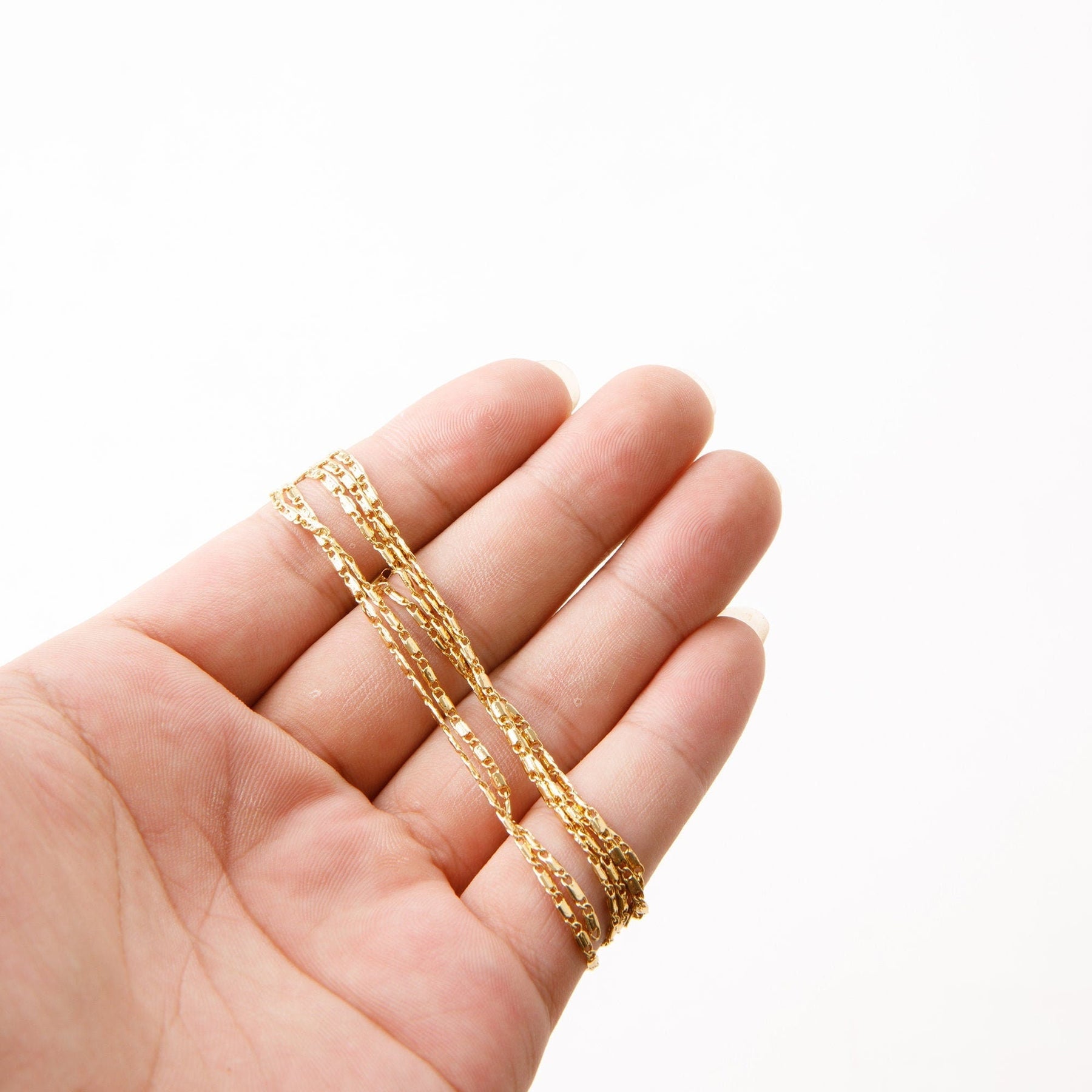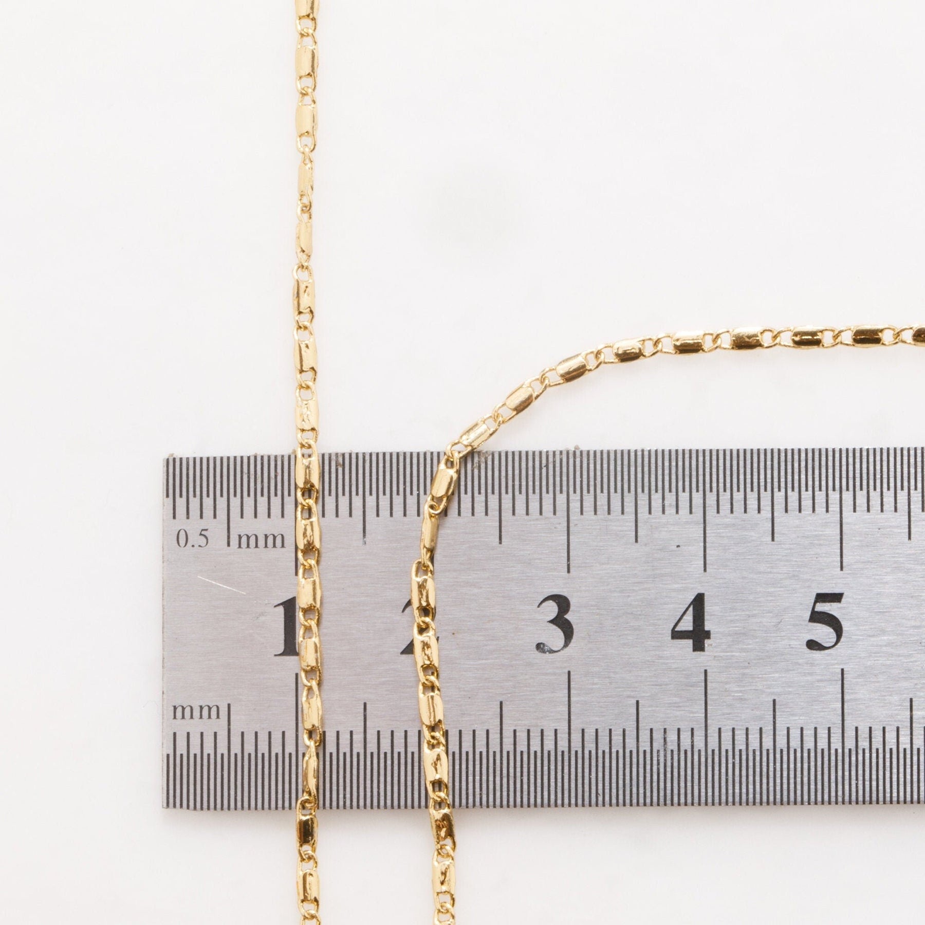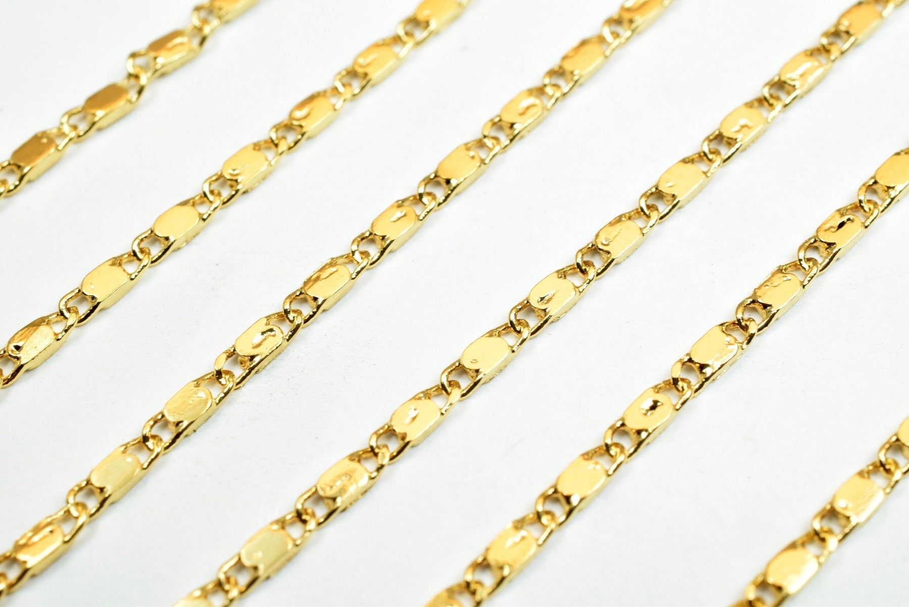1.5mm Gold Plated Chain Flat Bar Chain/Beading Chain 18K Finding Chain For Jewelry Making GFC016A Sold by Foot Size:1.5mm Material: 18K Gold Plated Metal: Base Metal Copper