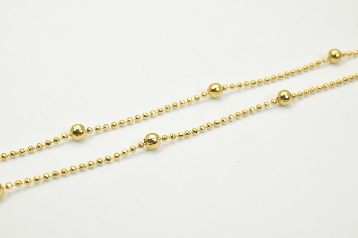 17"  18K Gold Filled Look, EP Chain Ball Beads Width 1.5mm Bead 3mm Item  CG16 jewelry making supplies - detail image 5