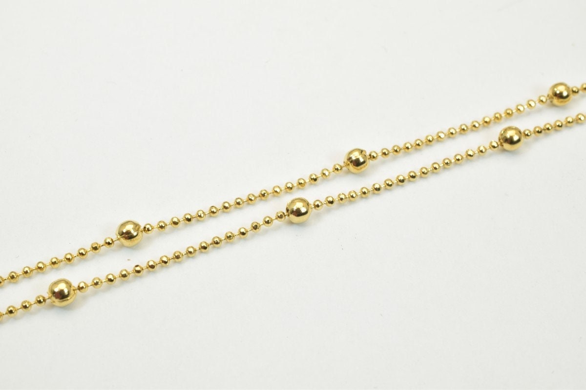 17"  18K Gold Filled Look, EP Chain Ball Beads Width 1.5mm Bead 3mm Item  CG16 jewelry making supplies - detail image 3