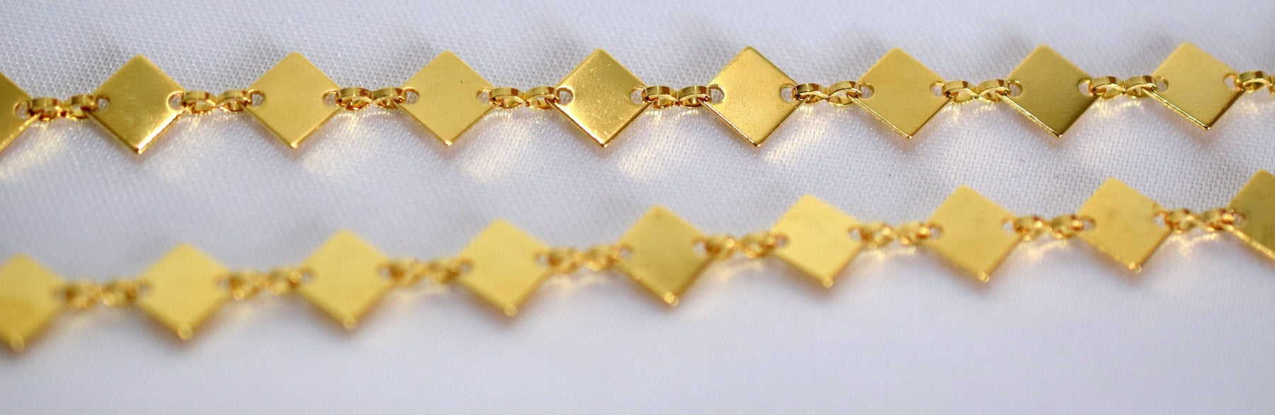 17.5 Inch 18K Gold Filled Alternative Diamond Square Chain - 8mm Wide, 0.7mm Thick for Jewelry Making