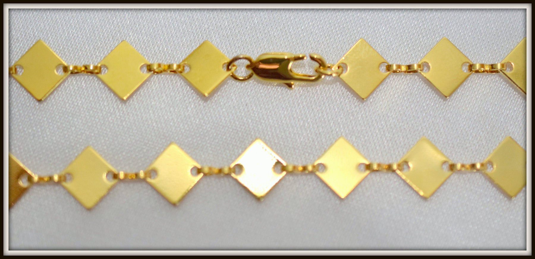 17.5" inch 18k Gold Filled Look, EP diamond square chain width 8mm, thickness 0.7mm item   CG504 jewelry making supplies