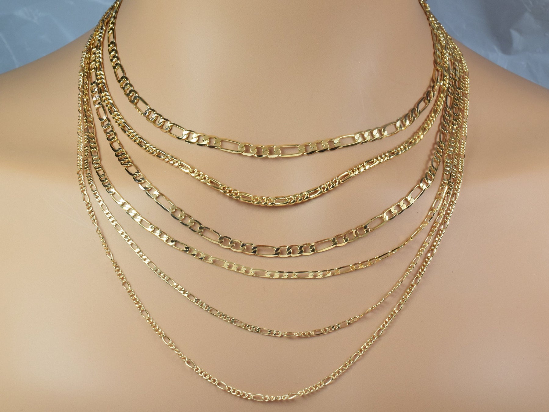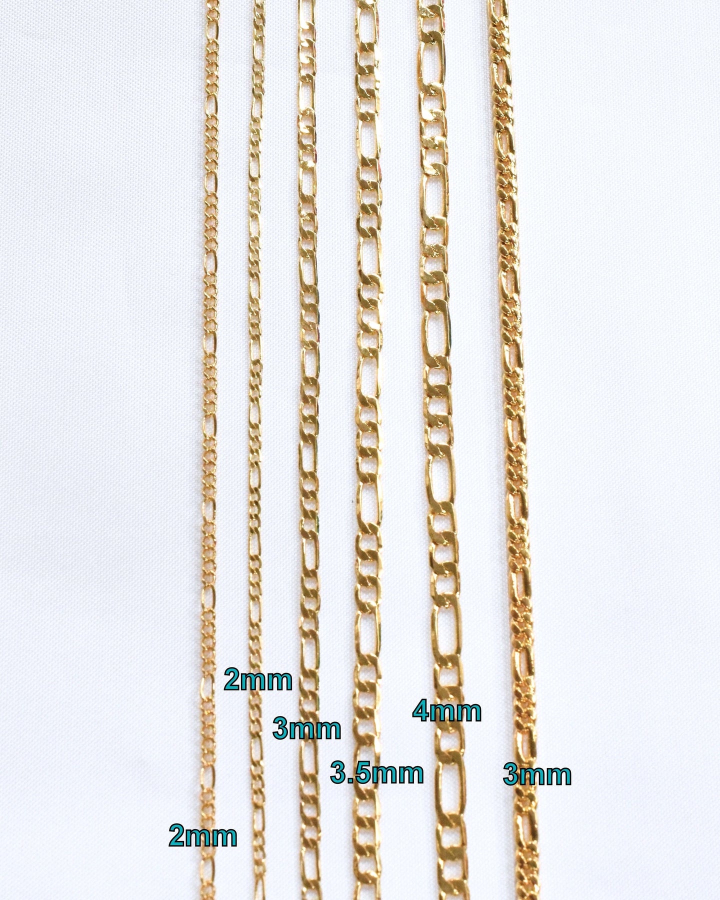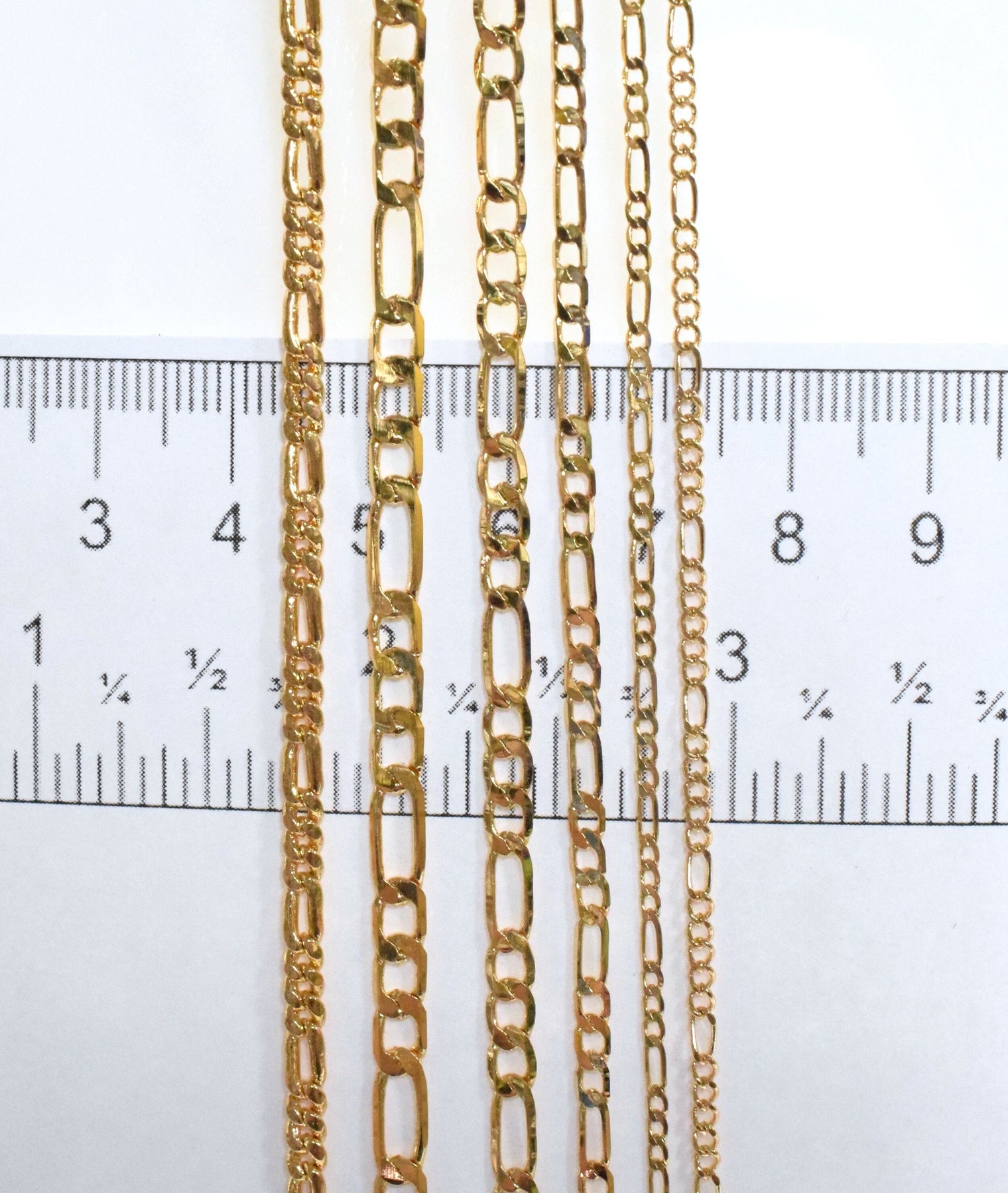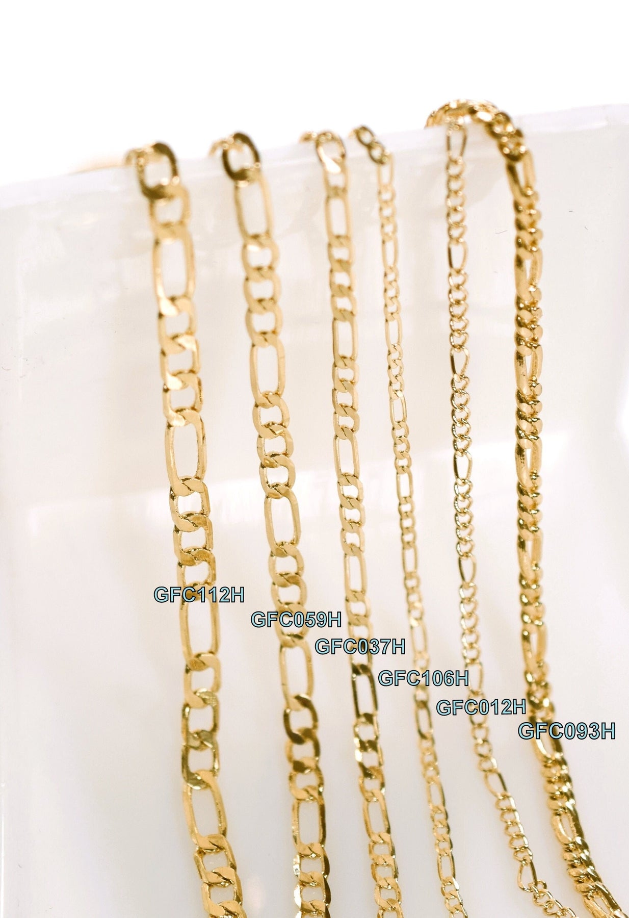 18k/14K Figaro Cuban Link Gold Filled Look, chain 2mm/3mm/3.5mm/4mm sold by foot jewelry making supplies