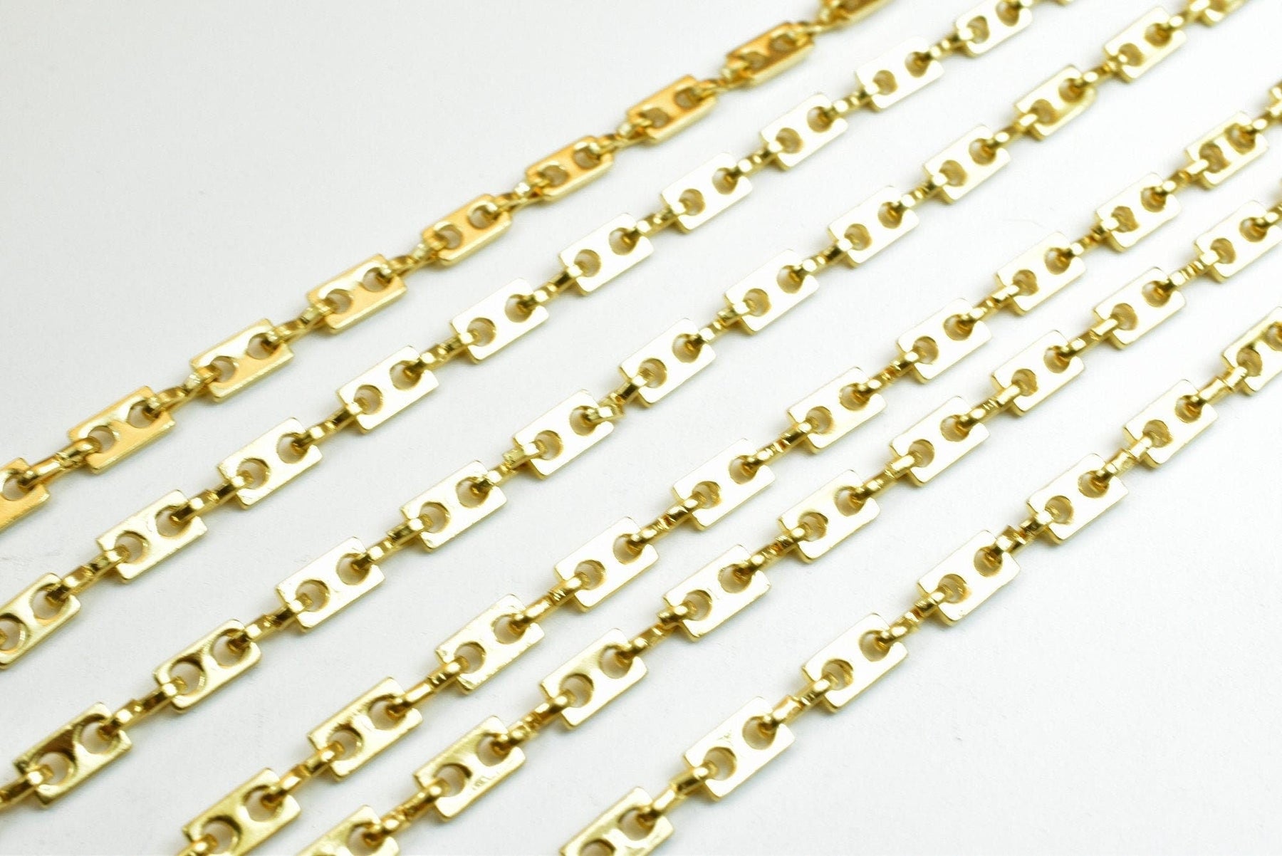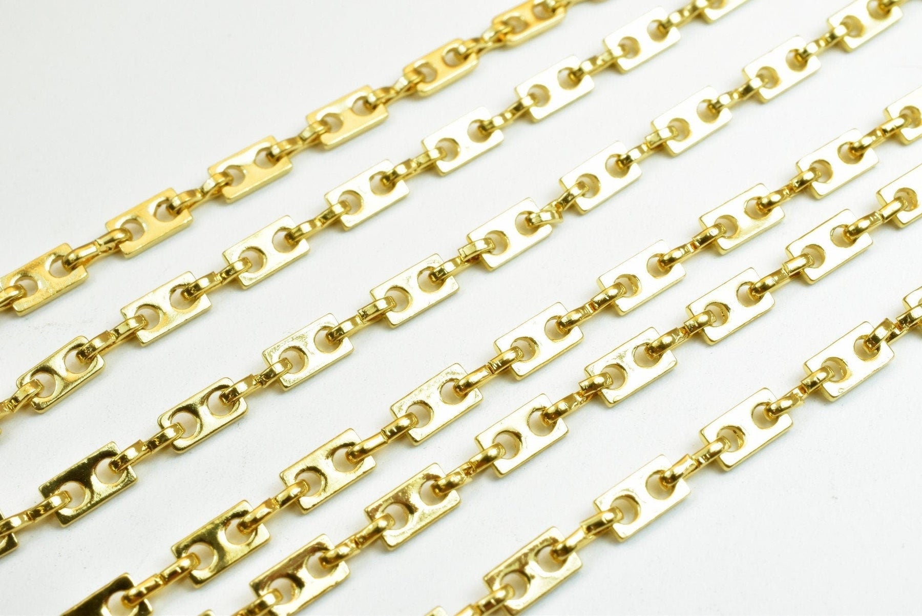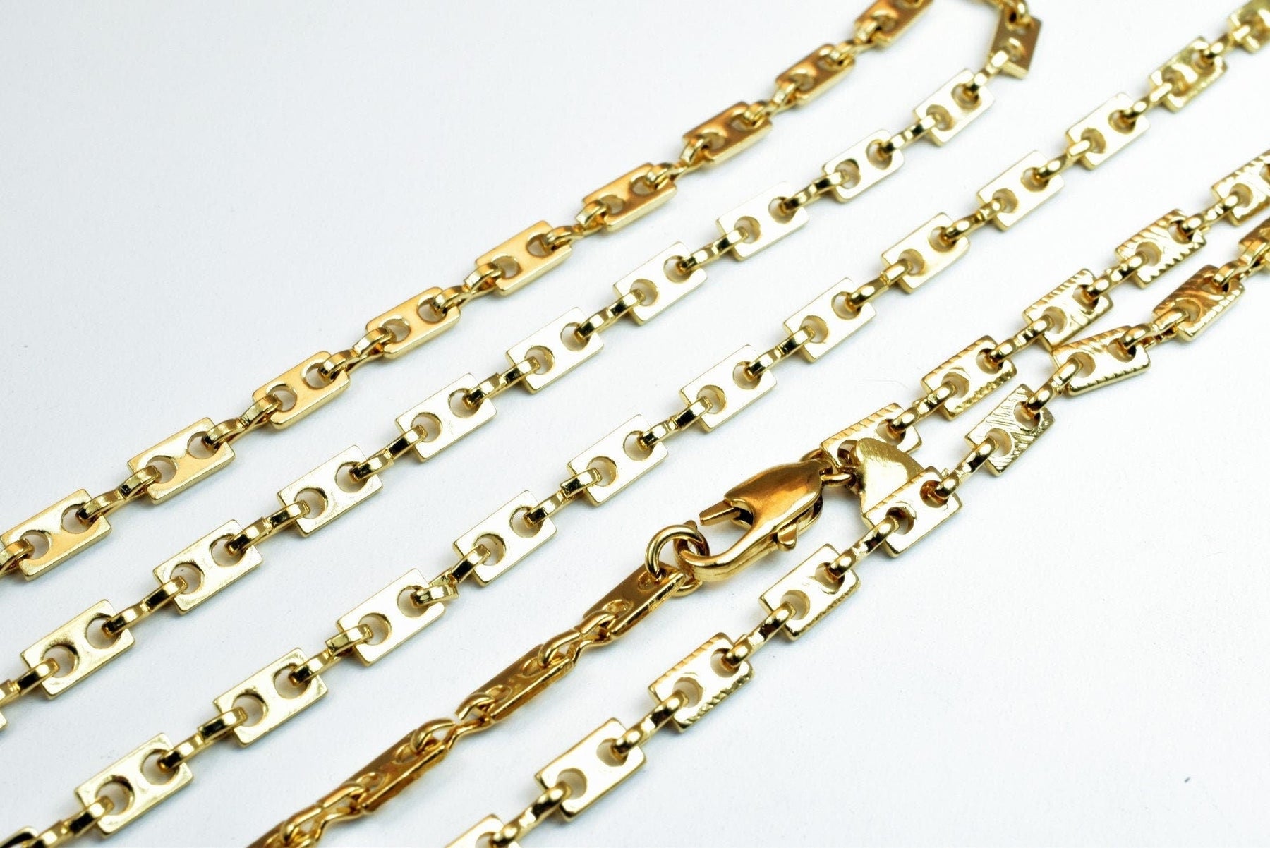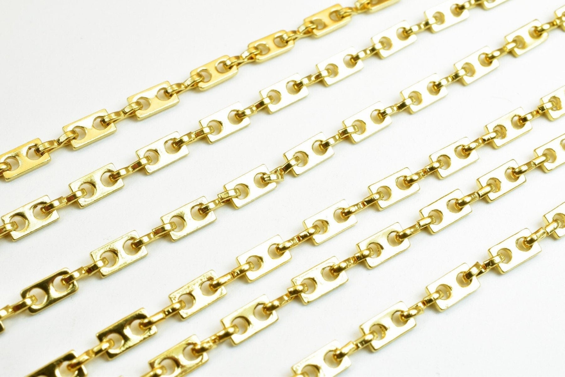 18K gold filled EP tarnish resistant Bar Chain Size 17 1/4" Long 3.5mm Width 2.5mm Thickness Findings For Jewelry Making I...
