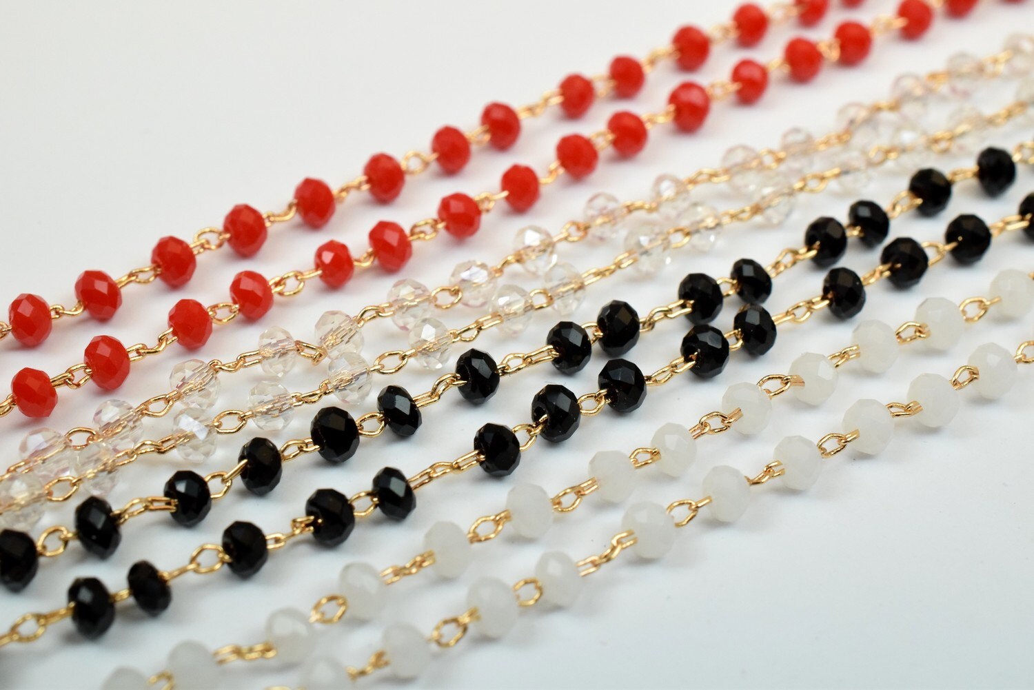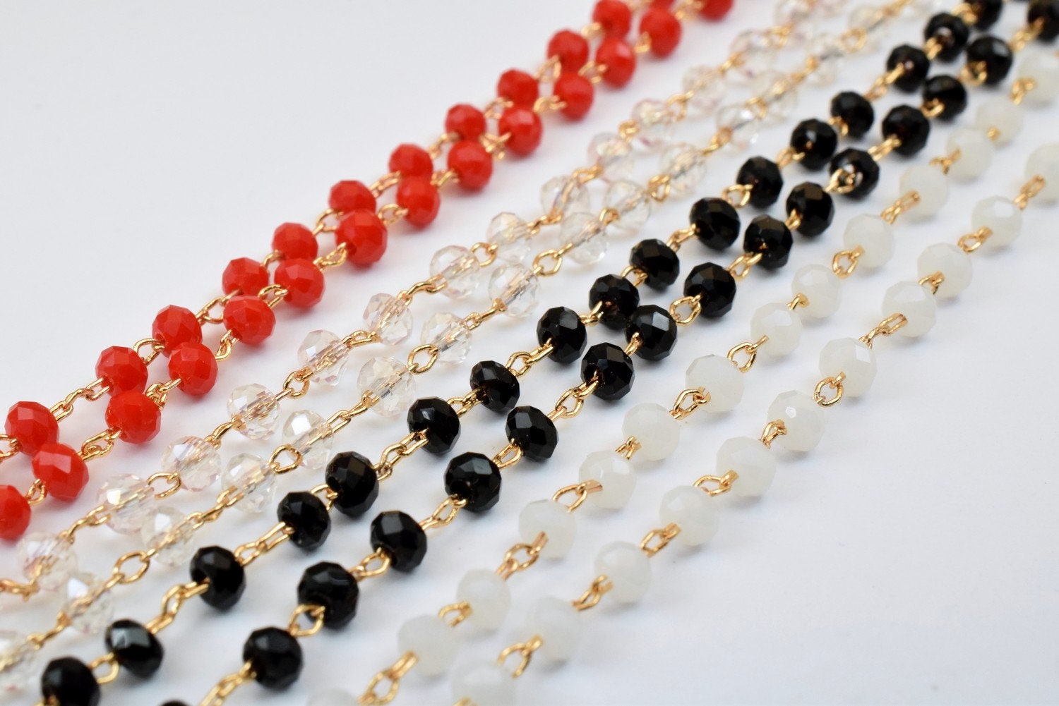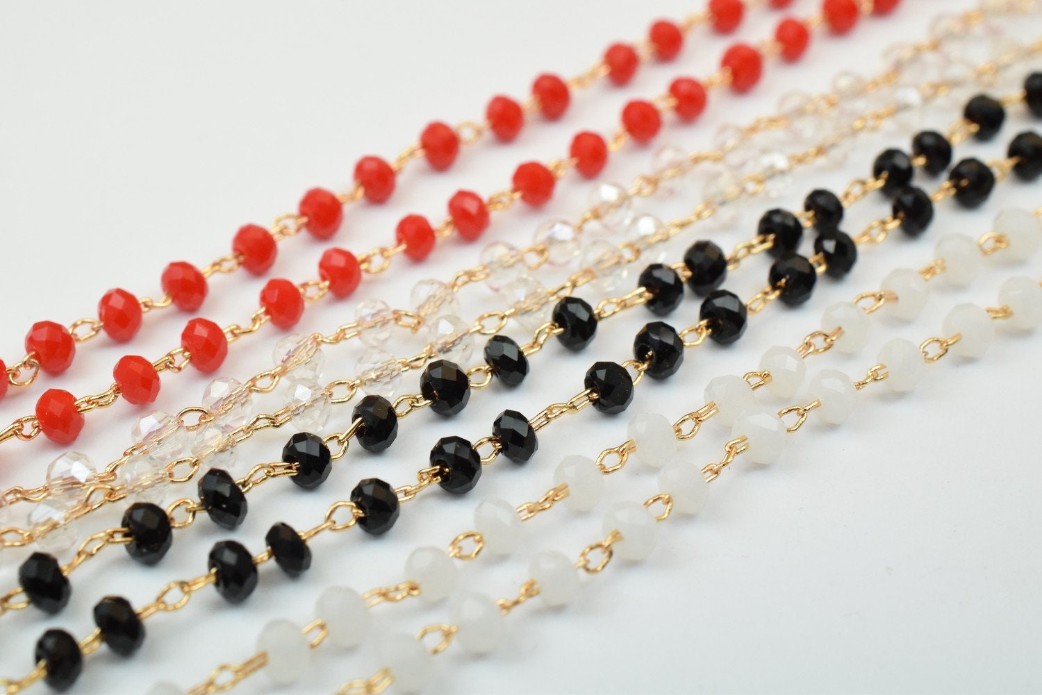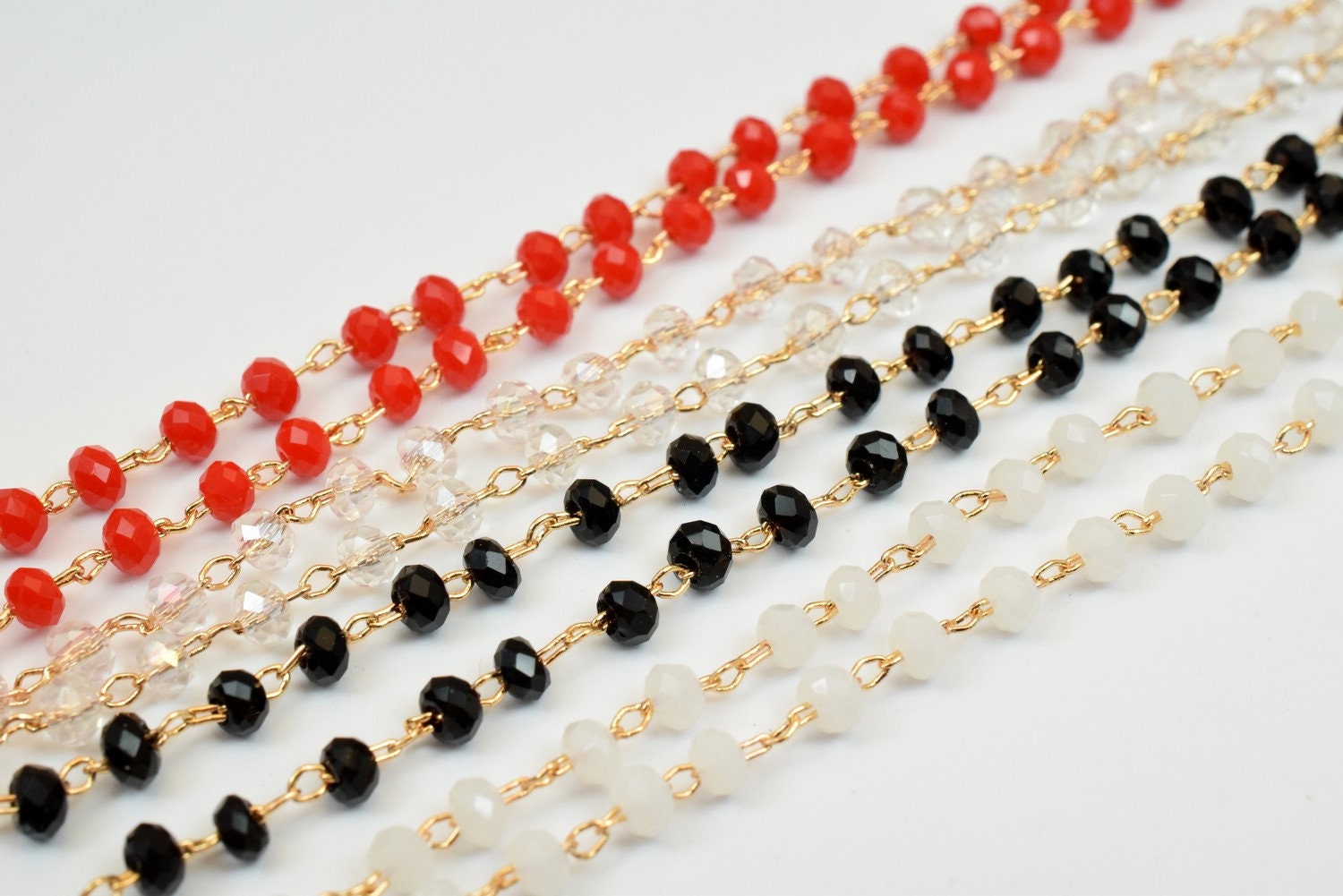 18K Gold Filled Wire Chain with Roundel Crystal Beads Size 2x3mm Finding for Gold Filled Jewelry Making Sold by Foot GFC077/GFC078/GFC079/GFC080