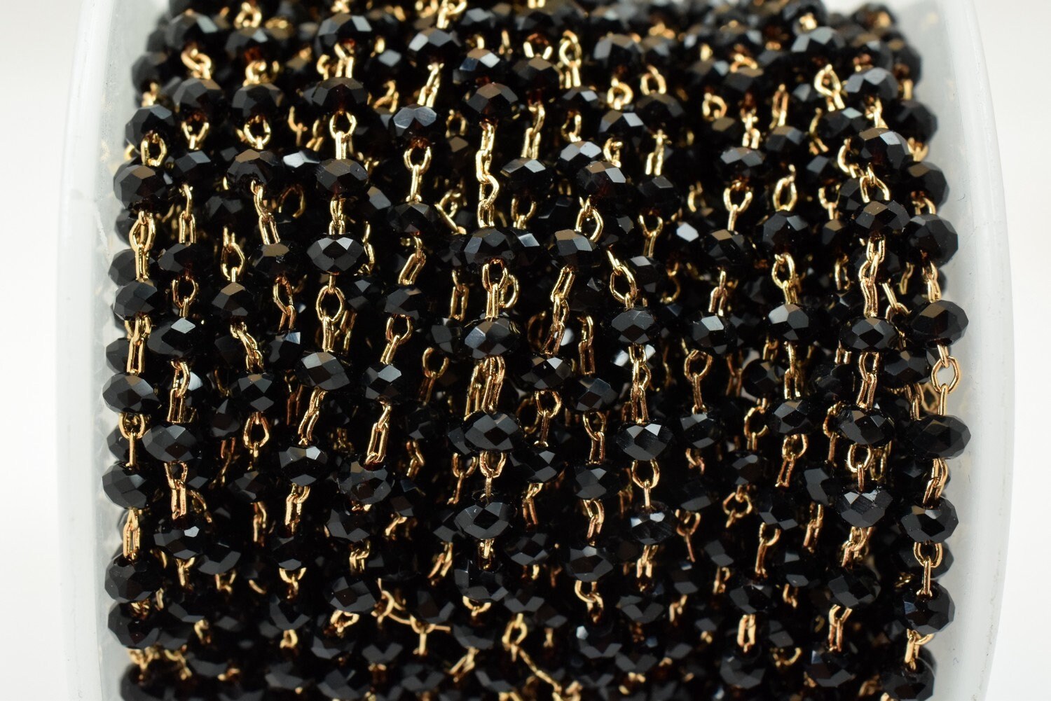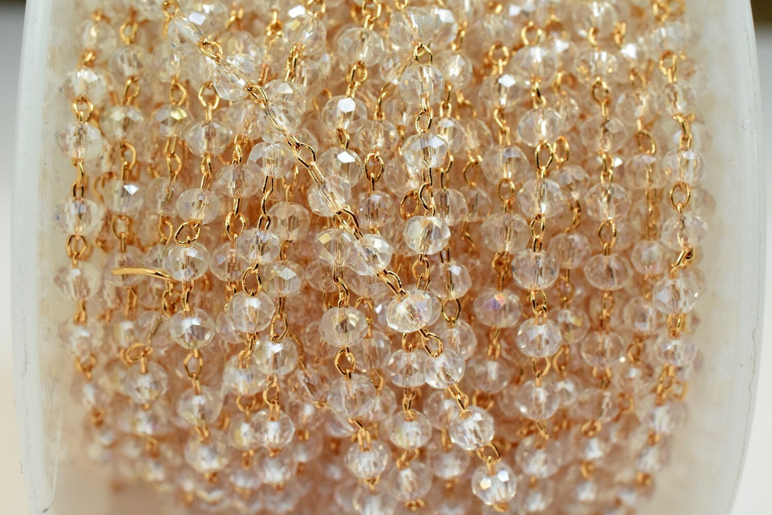 18K Gold Filled Wire Chain Alternative with 2x3mm Roundel Crystal Beads – Sold by Foot