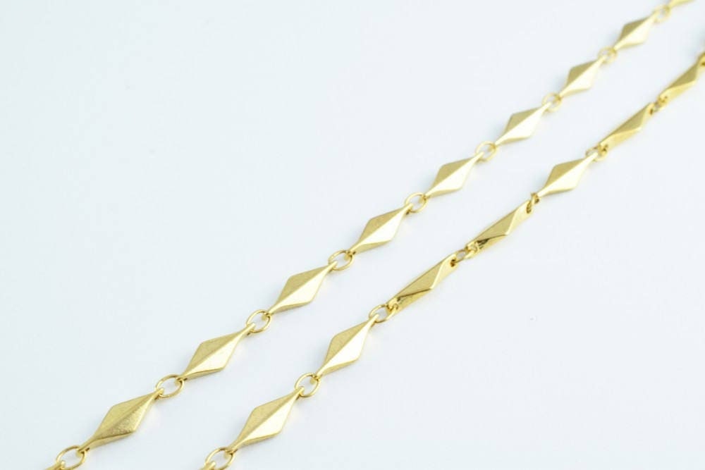 18K Gold Filled Look, Diamond Bar Link Chain   18" 4mm x 2mm   Item CG16 jewelry making supplies - detail image 2