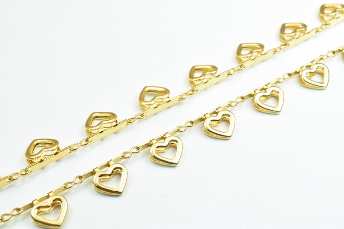 18K Gold Filled Alternative Heart Chain 17.25" 8.5mm Width Love Chain CG313