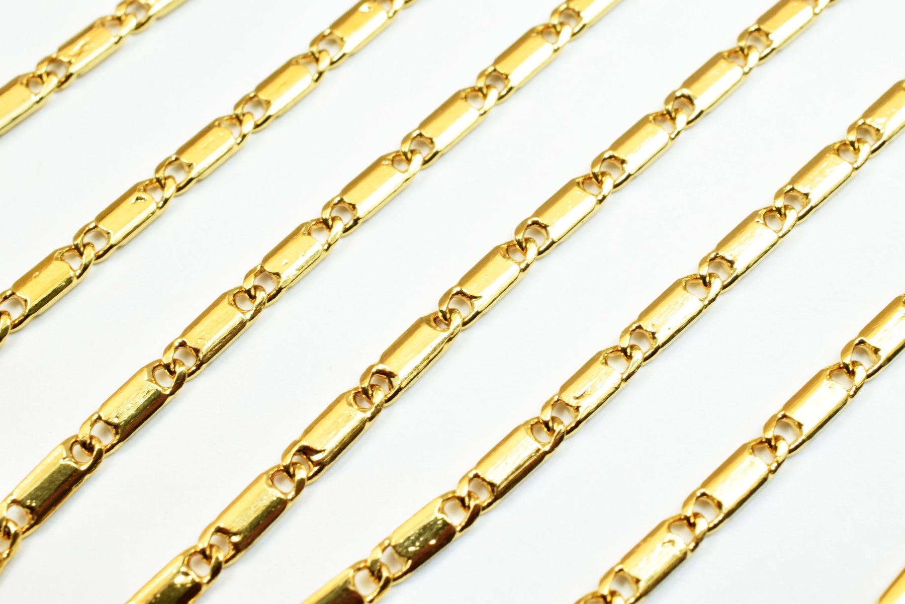 2.1mm Gold Filled chain beading chain/ bar chain 18k Gold Plated finding chain for jewelry making gfc031h sold by foot jew...