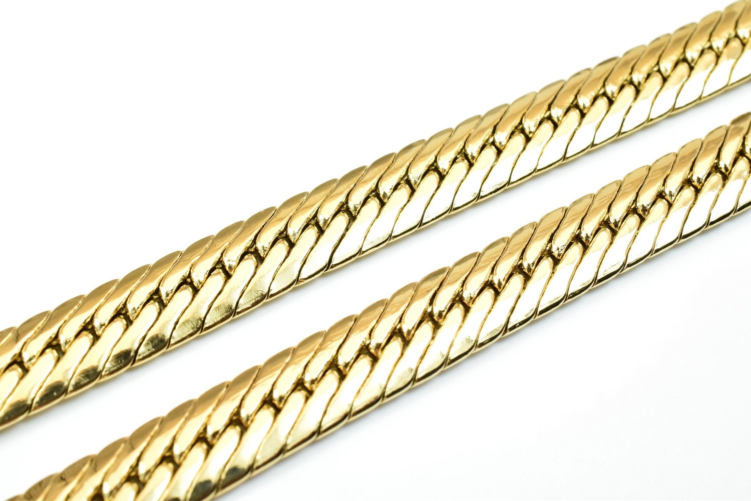 20" Inches 18K as Gold Filled* Chain Curb/Herringbone/Serpentine Chain Width 9mm/Thickness 2.5mm/ Findings for Jewelry Mak...