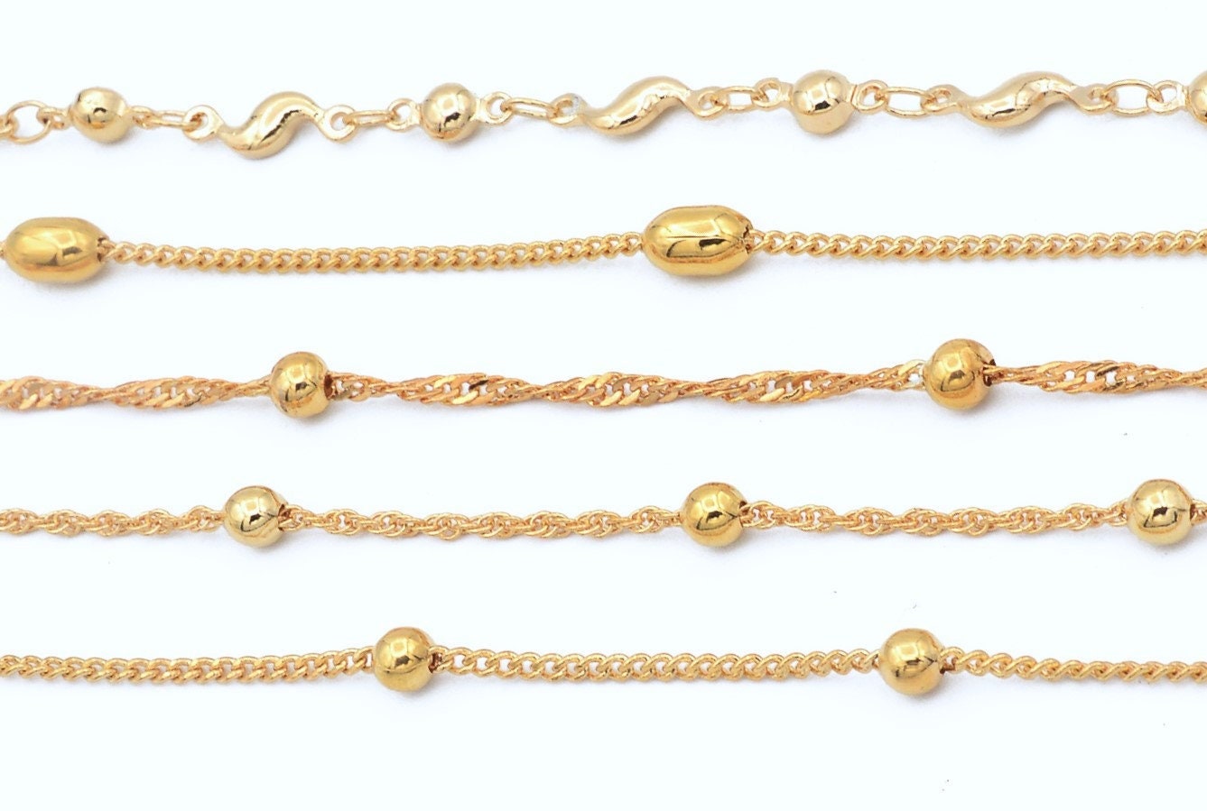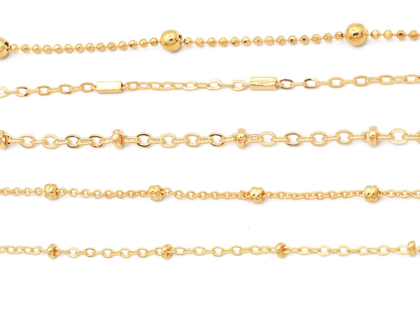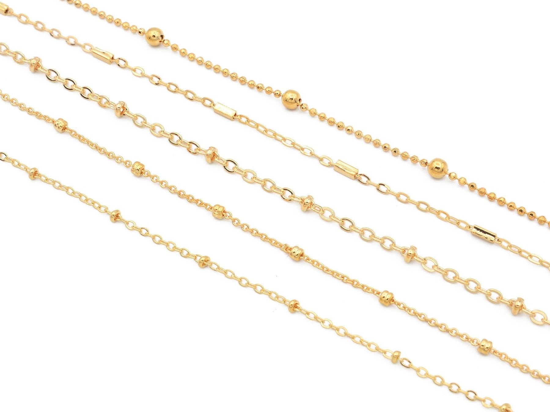 3 Feet 18K Gold Filled Look, Cable Chain Curb Cuban Flat With Oval Bead,  Satellite Chain customize necklace For Jewelry w...