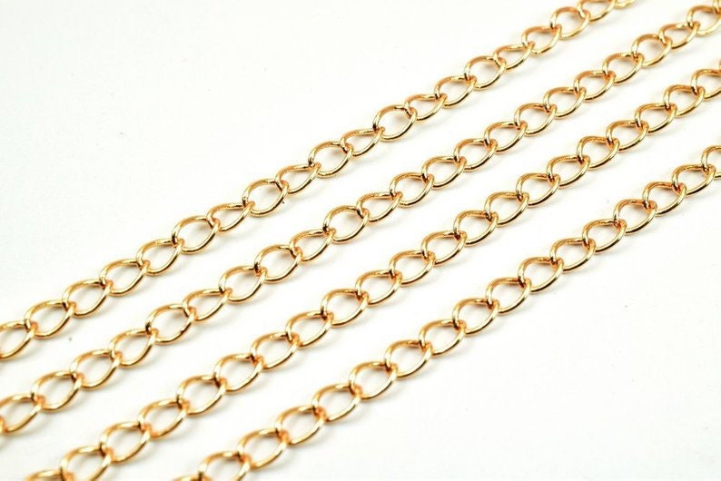 3 Foots 18K Pinky Gold Filled Chain Cable Link Chain Width 3mm Thickness 1mm Gold-Filled finding for Gold Filled Jewelry Making PGF26 - BeadsFindingDepot
