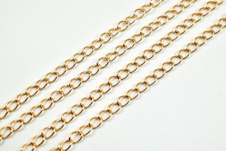 18K Pinky Gold Filled Chain Cable Link Chain Width 3mm Thickness 1mm Gold-Filled finding for Gold Filled Jewelry Making Sold by Foot PGF26