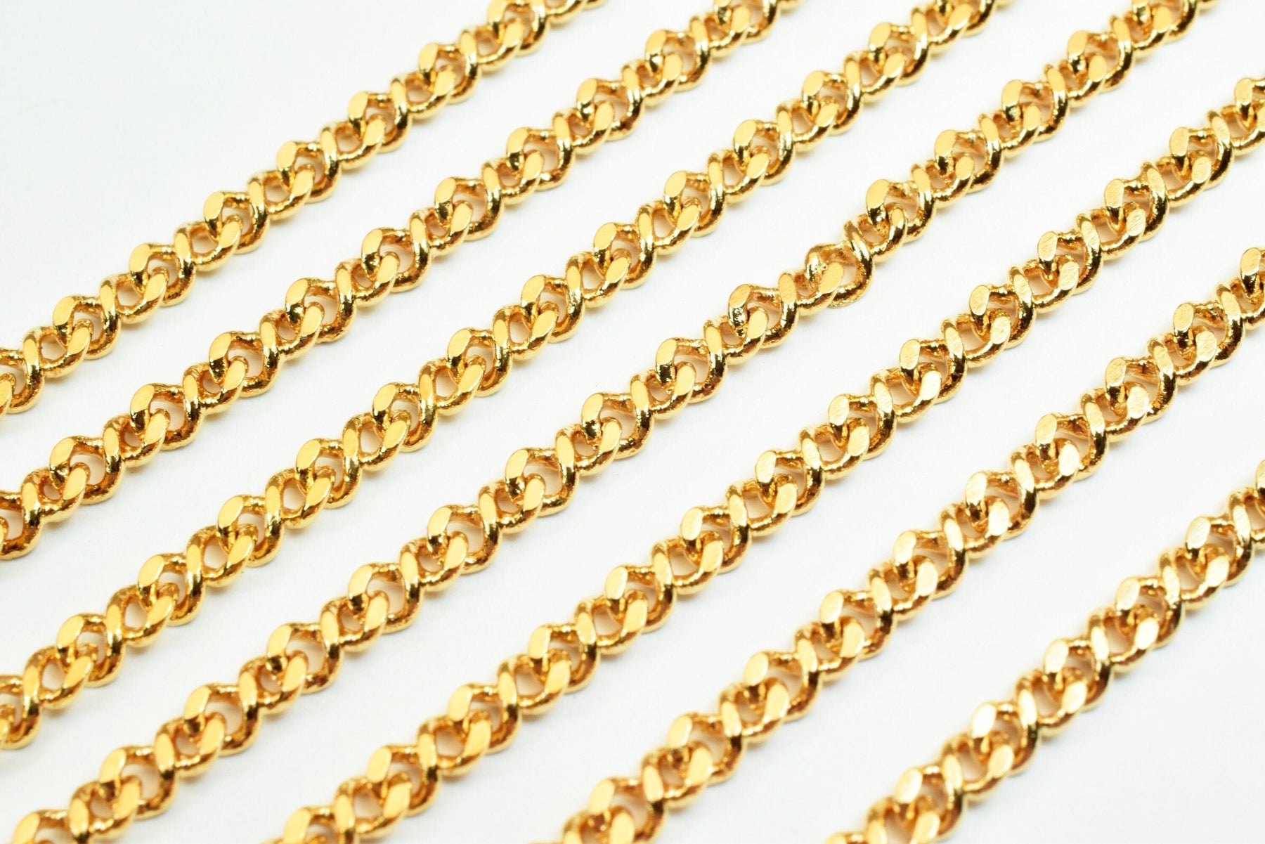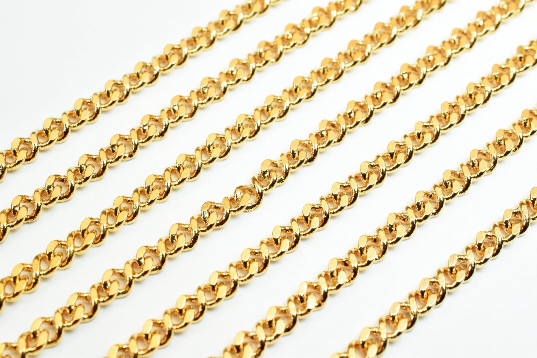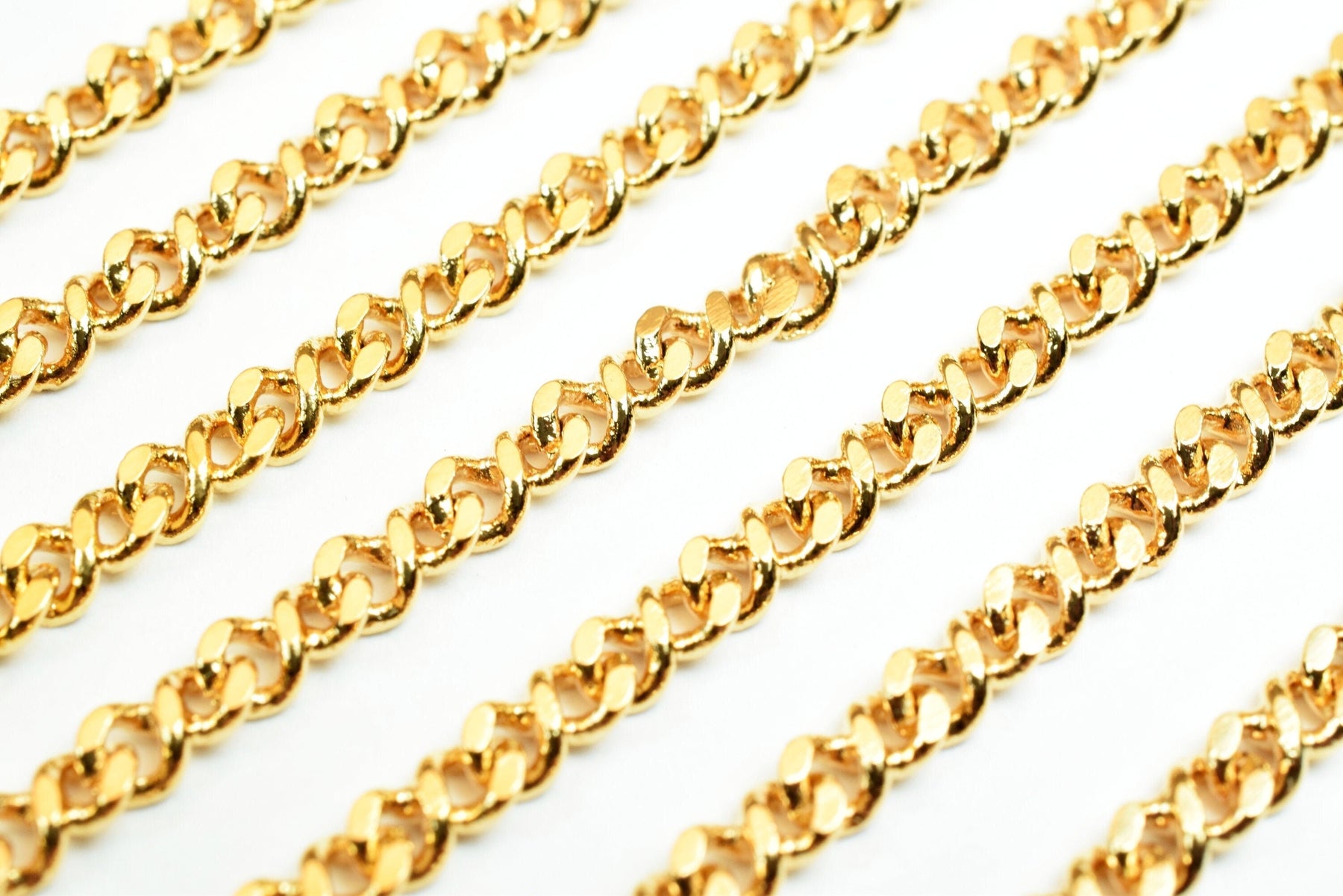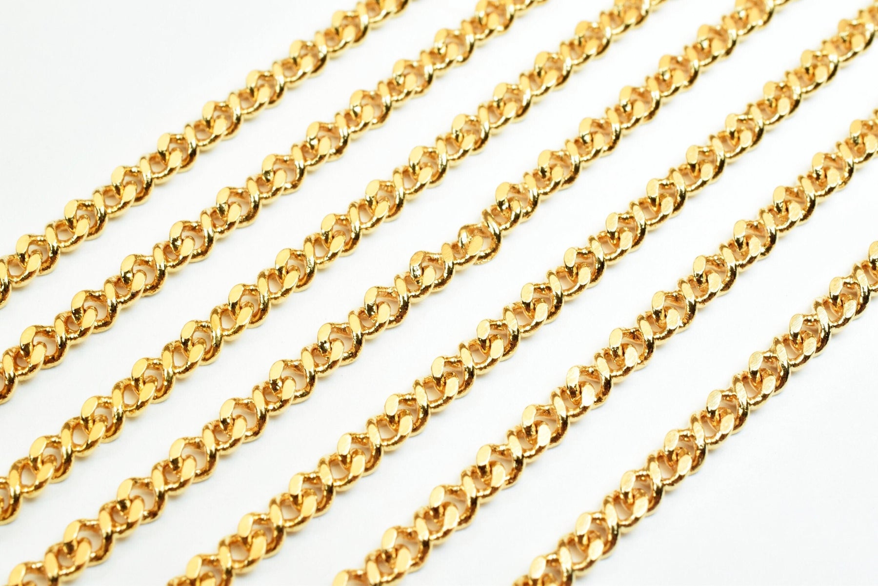 3mm as Gold Plated* tarnish resistant Curb Chain 18K GFC014 Sold by Foot Size 3mm Thickness 1mm Material: 18K Gold Plated Metal Copper *Skin Friendly *Long Lasting *Water Resistant as Gold Plated * tarnish resistant *******www.BeadsFindingDepot.com******* is 5% less (discount) The color variance happens all the time from screen to screen