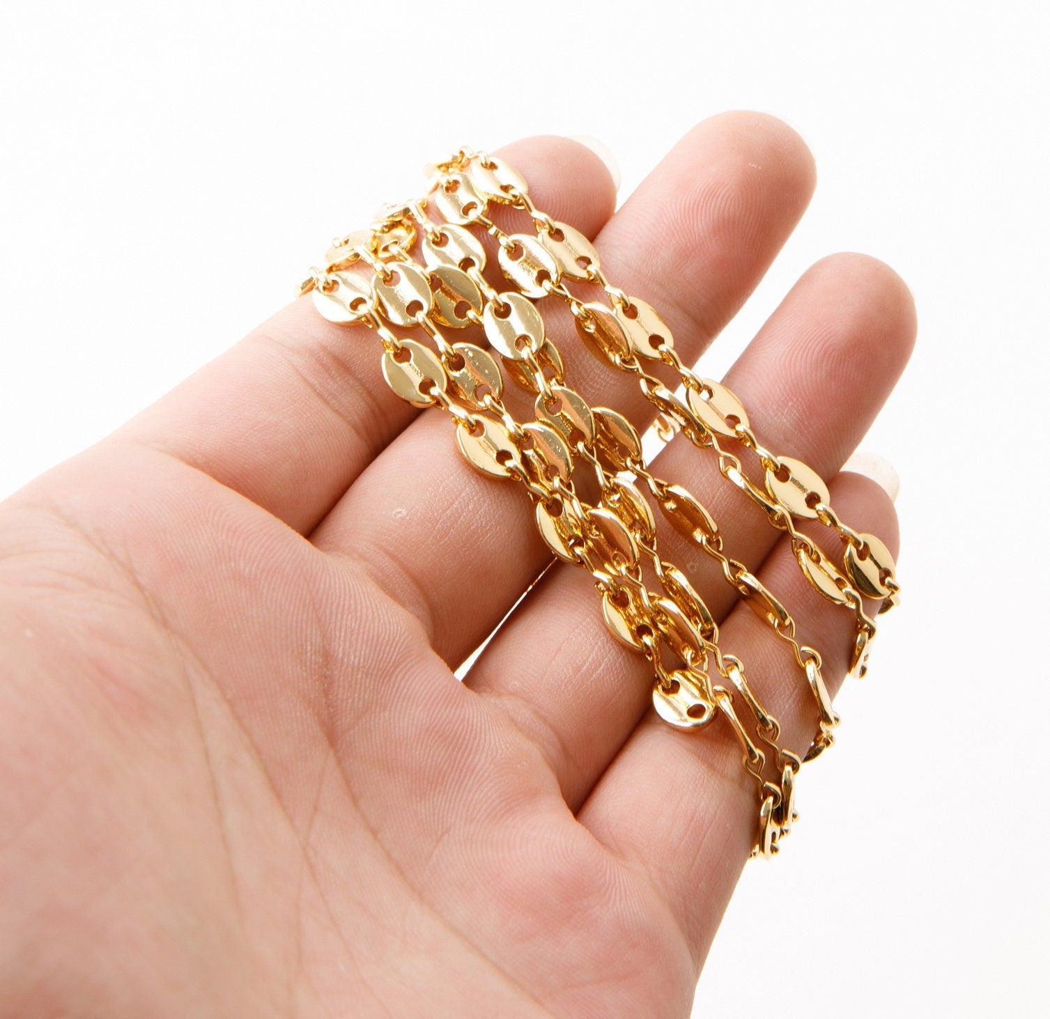 Channel cable looking link chain 18k Gold Plated 6mm chain sold by foot for jewelry making gfc108 jewelry making supplies
