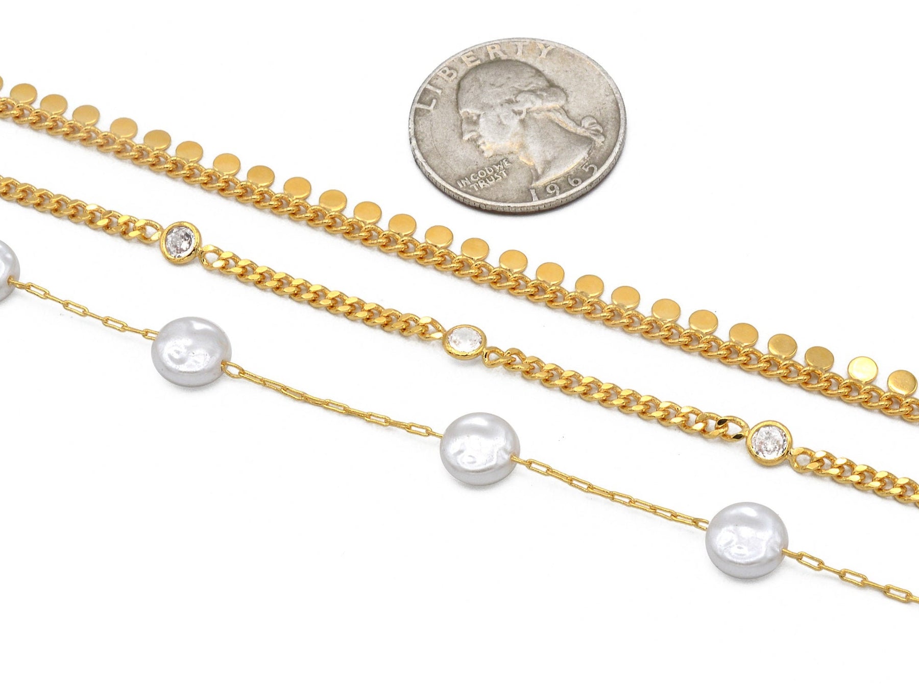18K Gold Filled EP Beaded Cuban Curb Chain, Customize Necklace With Pearl /Crystal/Coin findings for Jewelry Making